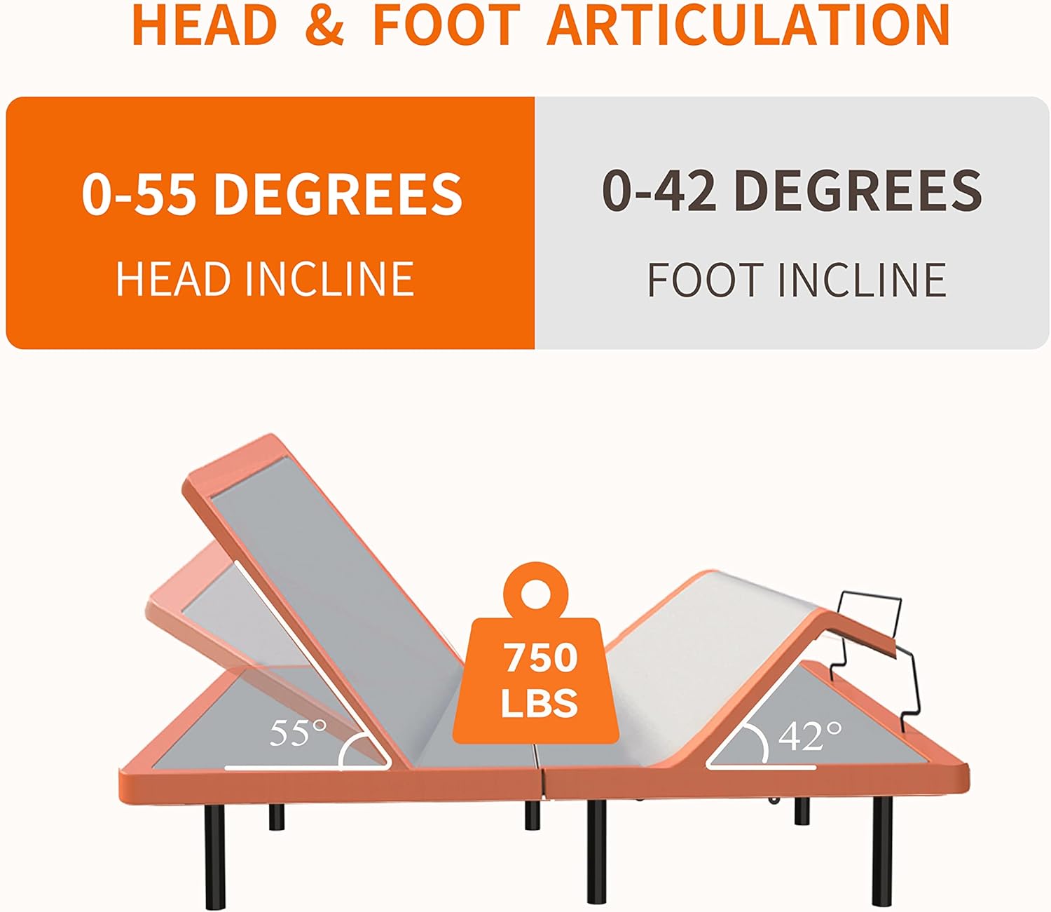 Mult-function Design - Adjustable legs allow you to adjust the height to 8 inches, and 11.4 inches. For our adjustable bed frame, many humanized designs (USB Ports and Under Bed Night Lights) will make your life very convenient.