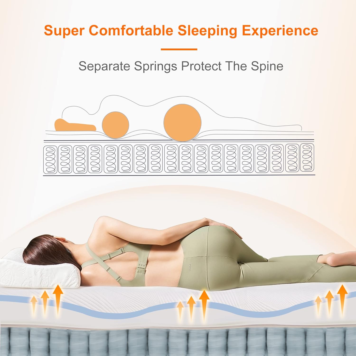 ERGONOMIC DESIGN TO RELIEVE BACKACHE - Total 5 layer materials. 2.5 gel infused air memory foam (light blue), 2.2 high-density memory foam, 6.3 pocket spring support system (319 independent pockets springs by high technology), 1 high-density support foam.