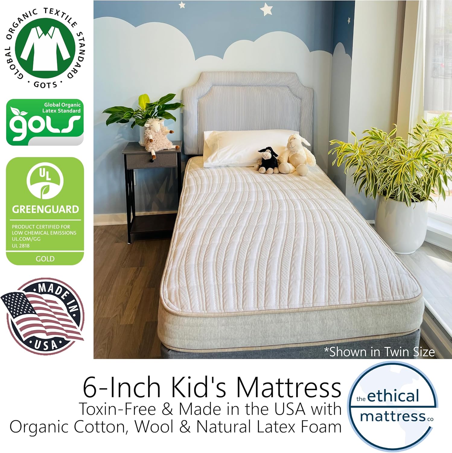 Ethical Mattress CO 6" Kids Mattress, Toxin-Free, Made in The USA with Organic Cotton, Wool, Latex & Pocketed Coils (Bed-in-a-Box); Perfect for bunk beds, trundles & Platform beds - Twin Size