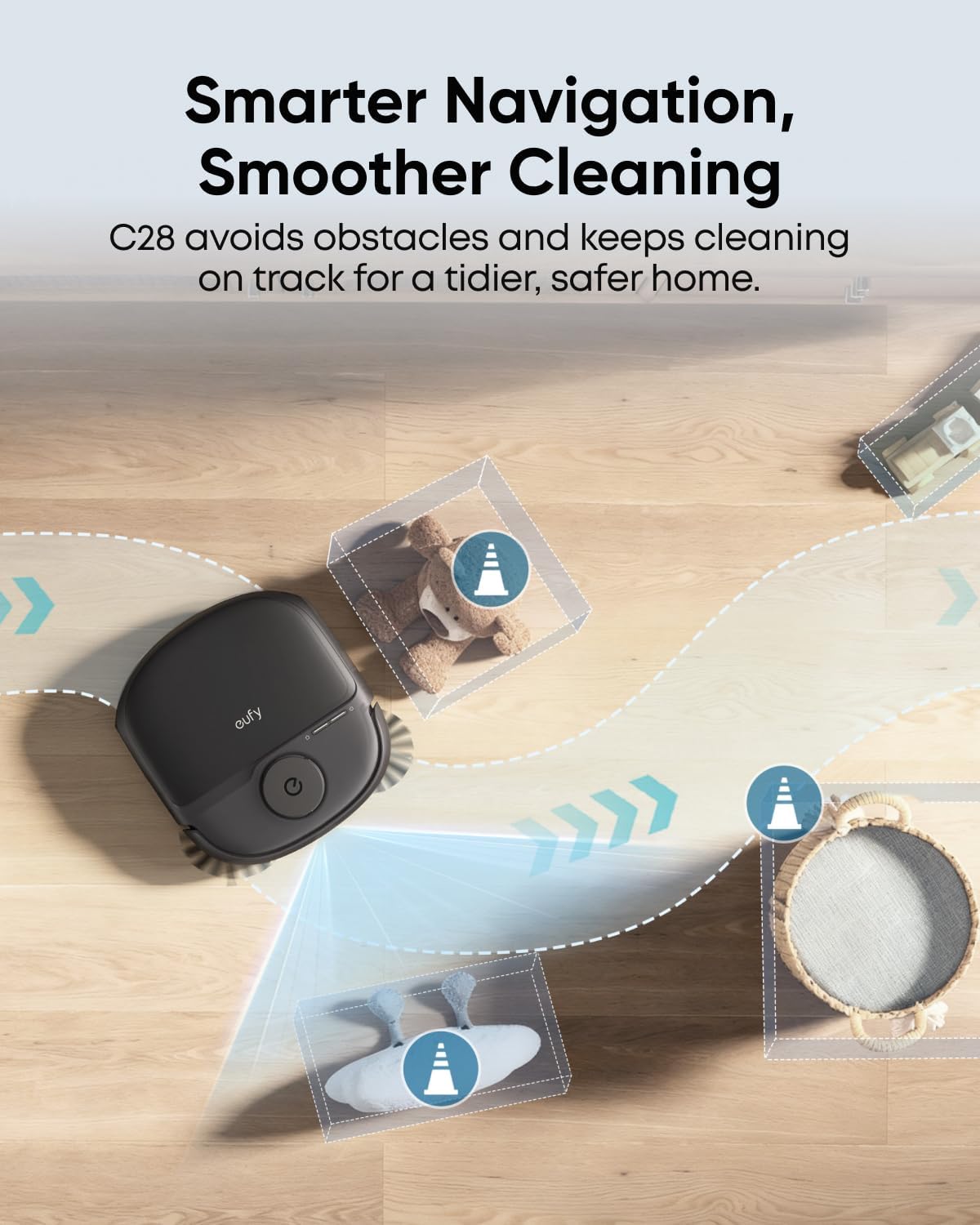 : iPath 2.0 Laser Navigation avoids furniture, toys, pet bowls (recognizes objects 33cm) even in low light. Auto-lifts mop 10.8mm on short carpets for mixed-floor cleaning.