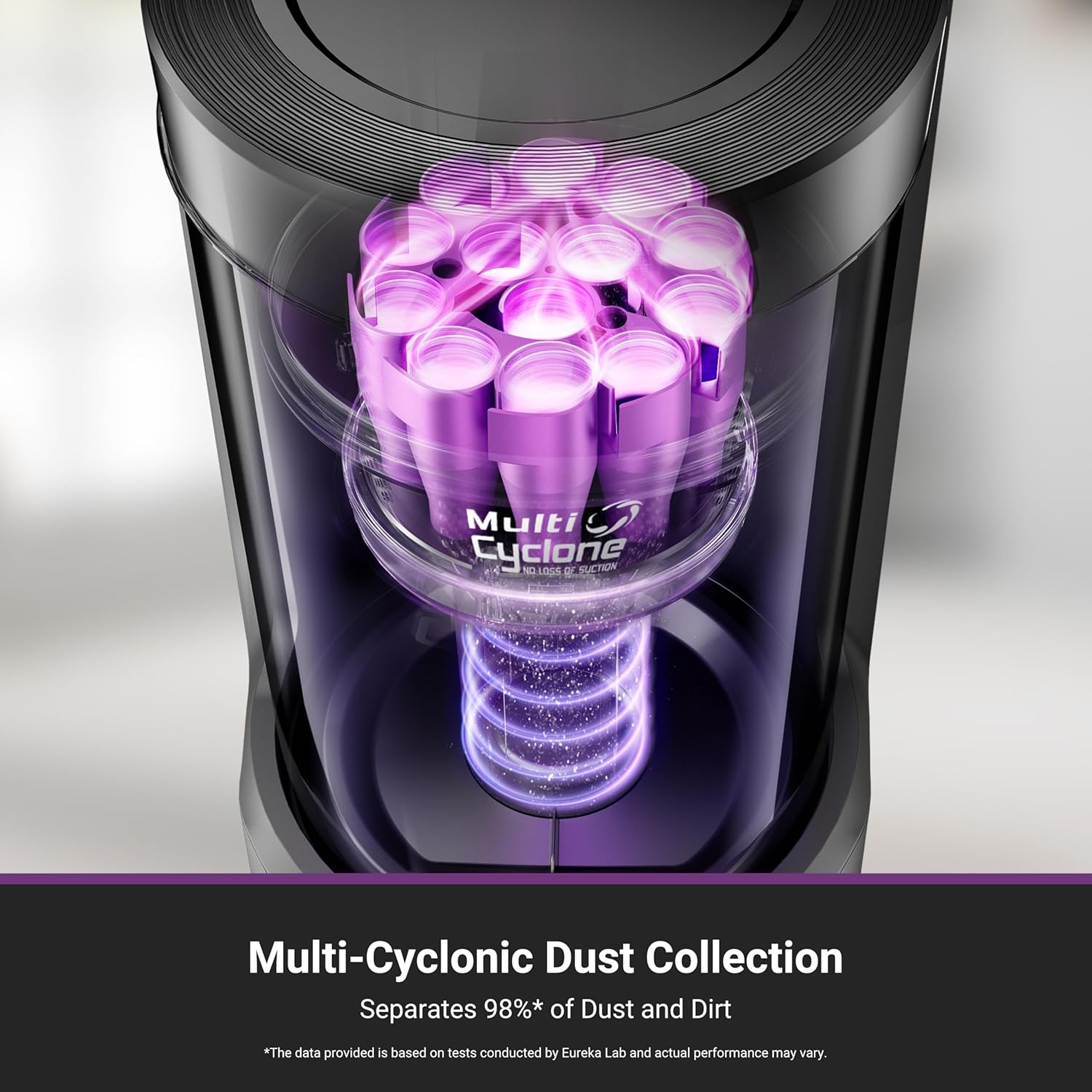 Multi-Cyclonic Dust Collection E20 Plus self-emptying robot vacuum cleaner comes equipped with a 13-cone structure, multi-cyclonic separation technology combines with powerful centrifugal force, generated by the suction during dust collection, to separate 98%* of dust and dirt before they reach the filter.