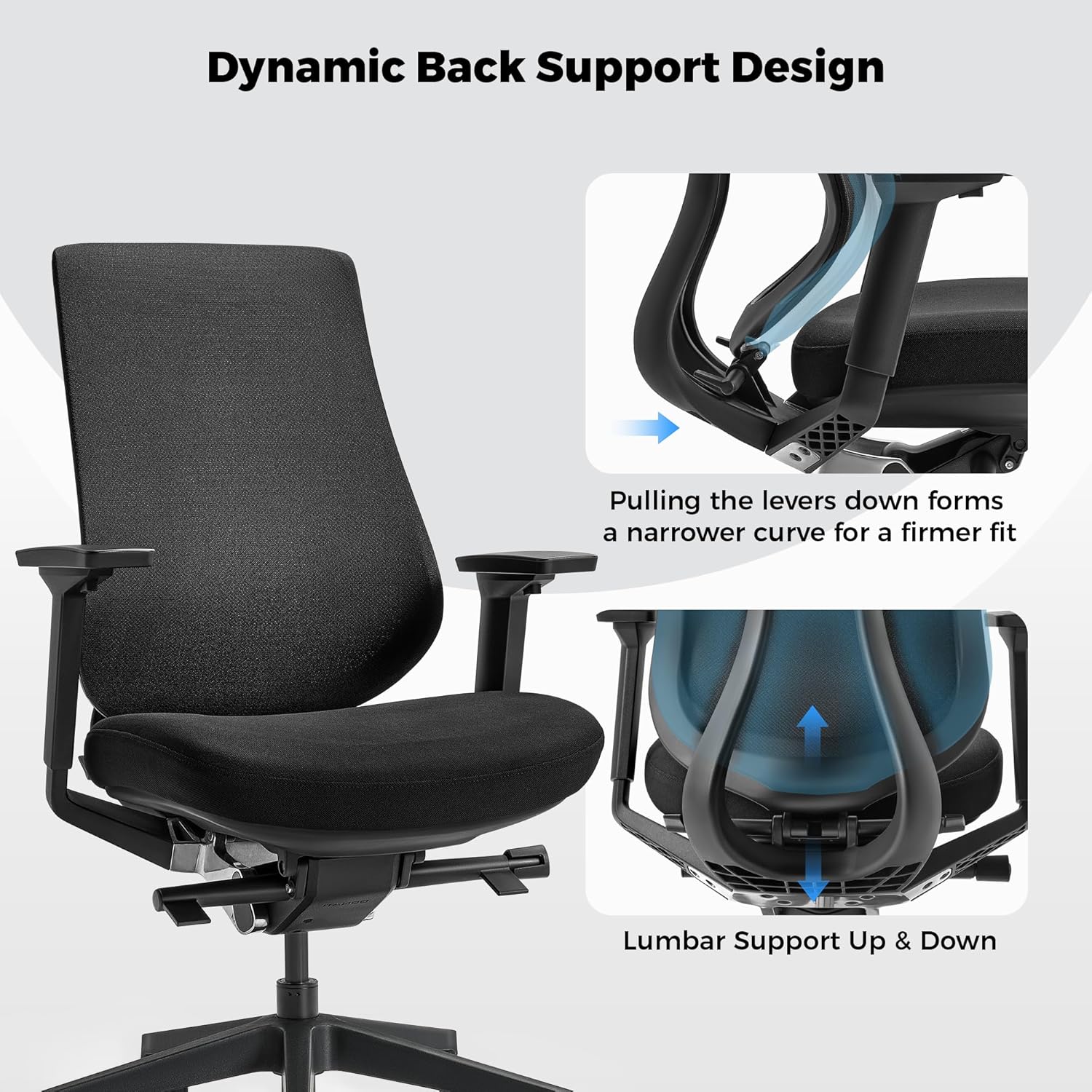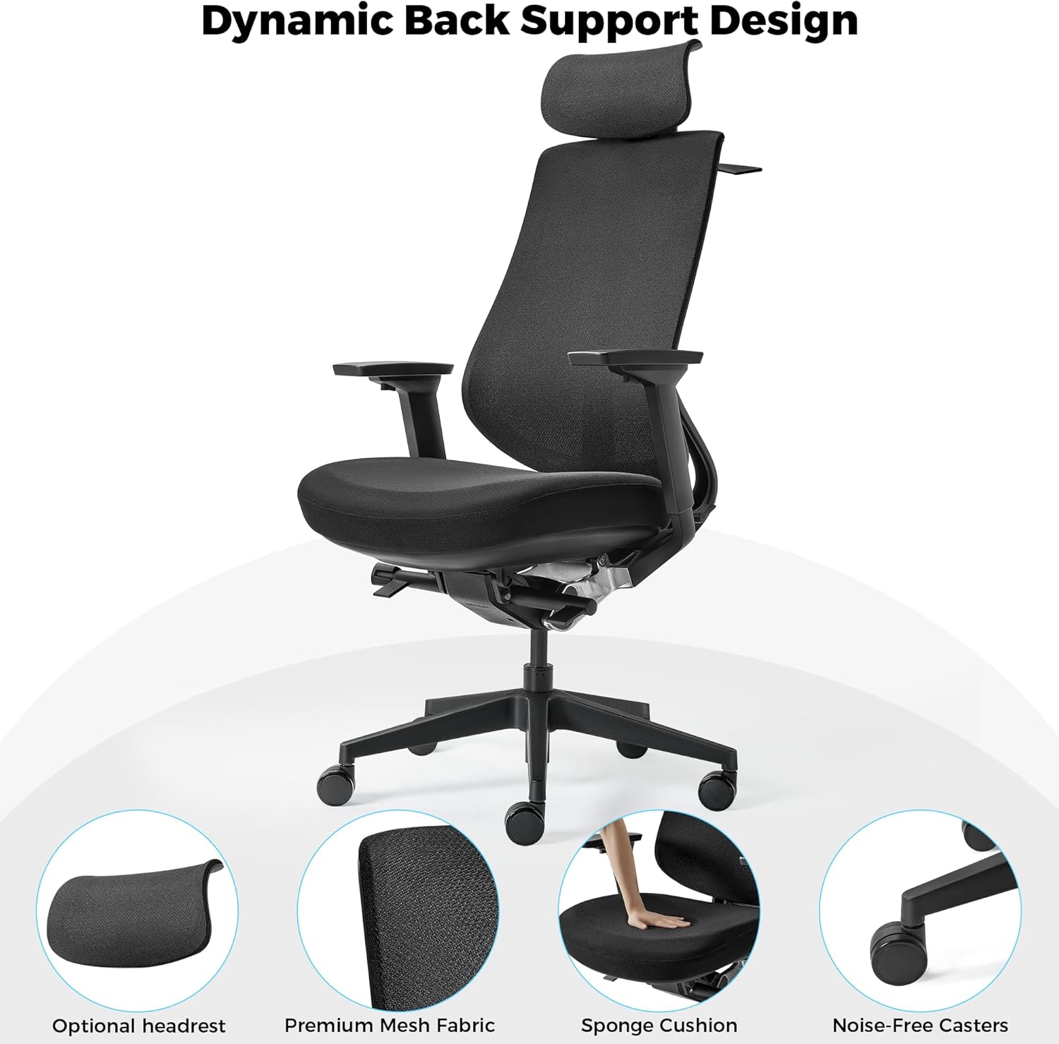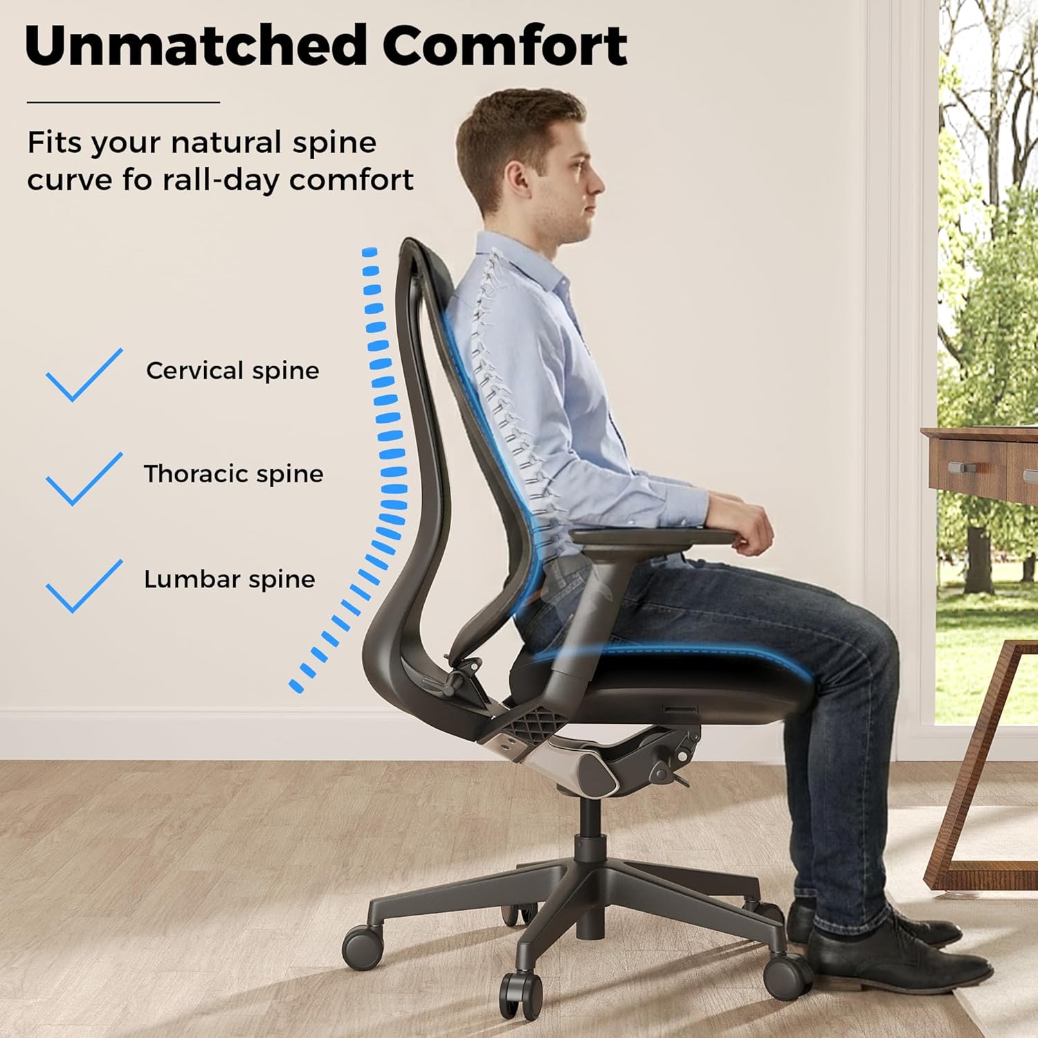 - Say goodbye to lower back fatigue with our integrated office chair back support. Engineered to mimic the natural curve of the human spine, this mesh office chair features a one-piece backrest that provides a supportive embrace for your waist and back. The innovative contours ensure your spine remains aligned, making it the most comfortable office chair for sitting all day.