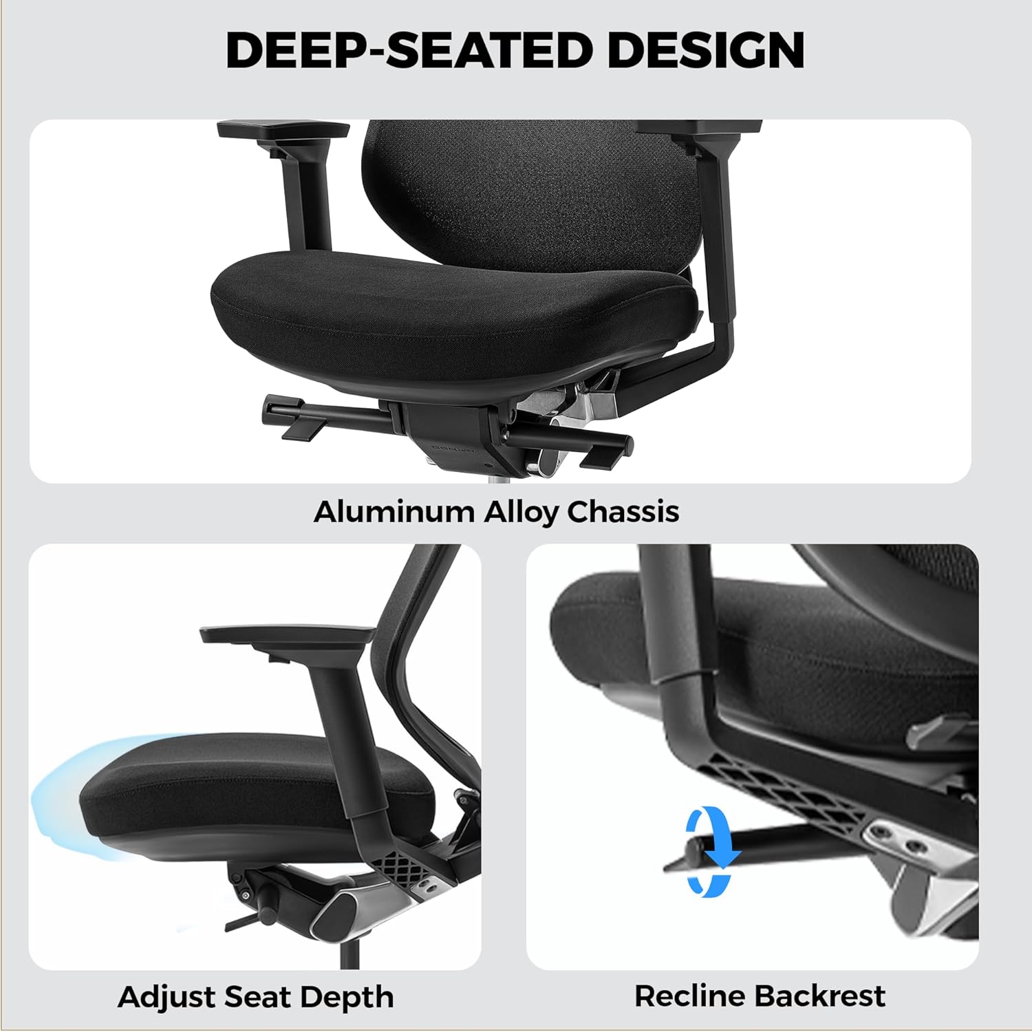 & Tailor your comfort with 3D adjustable armrests and customizable seat depth to find your perfect fit. This heavy duty office chair features a reinforced frame and silent casters for quiet, smooth mobility on any floor. Backed by , we provide U.S.-based support to ensure your long-term confidence and productivity with this premium task chair.