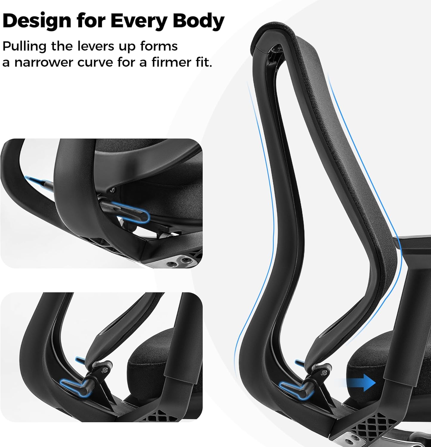 - Say goodbye to lower back fatigue with our integrated office chair back support. Engineered to mimic the natural curve of the human spine, this mesh office chair features a one-piece backrest that provides a supportive embrace for your waist and back. The innovative contours ensure your spine remains aligned, making it the most comfortable office chair for sitting all day.