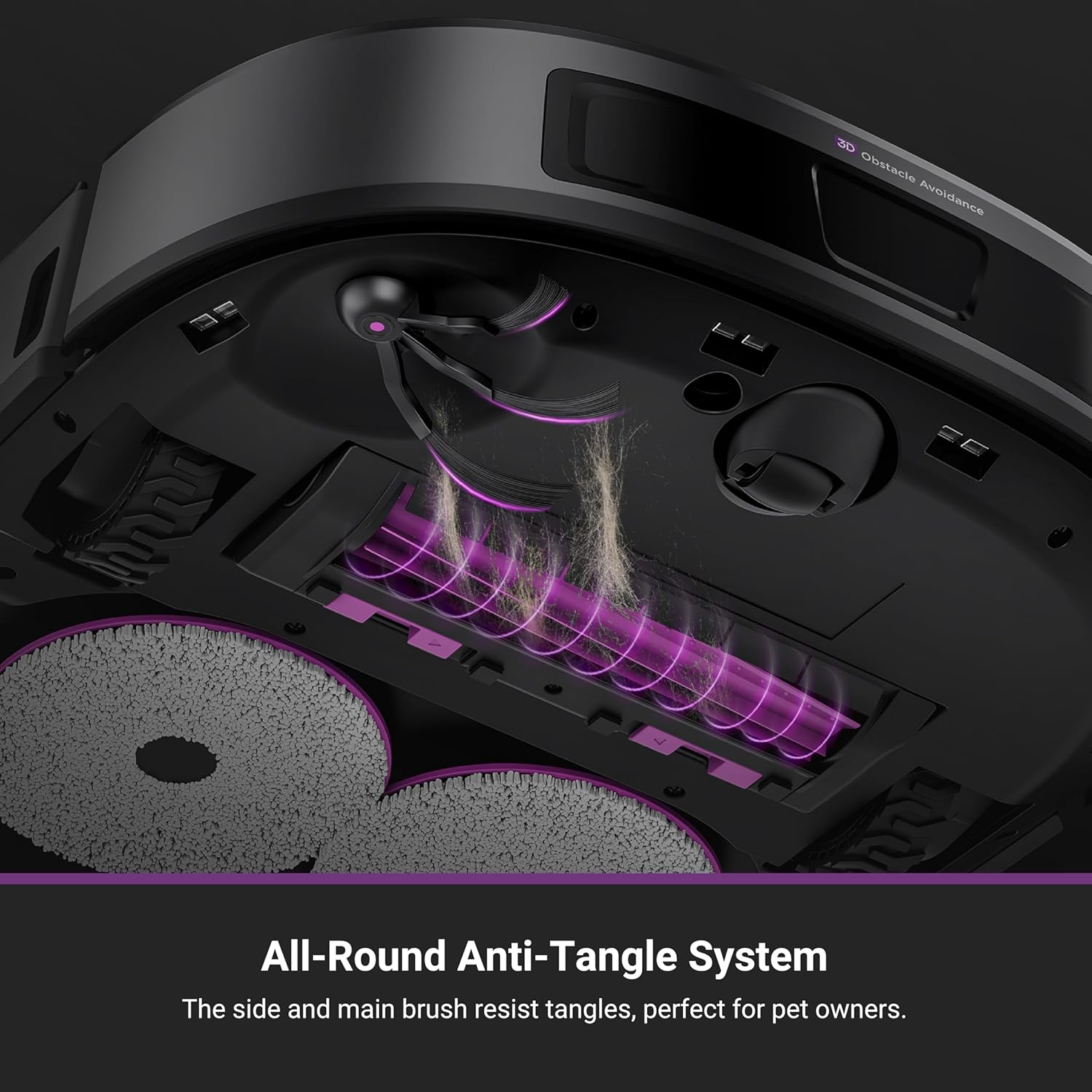 Ideal for pet owners:the DragonClaw Side Brush tackles stubborn pet hair with ease. Its unique V-shaped design detangles hair as it spins, keeping your robot vacuum running smoothly. With a >99.99% hair removal rate*, the anti-tangle roller brush prevents hair from wrapping around the ends, while a built-in comb continuously clears strandsno more frustrating clogs or manual cleanups. Enjoy hassle-free, tangle-free cleaning, specially designed for homes with shedding pets!