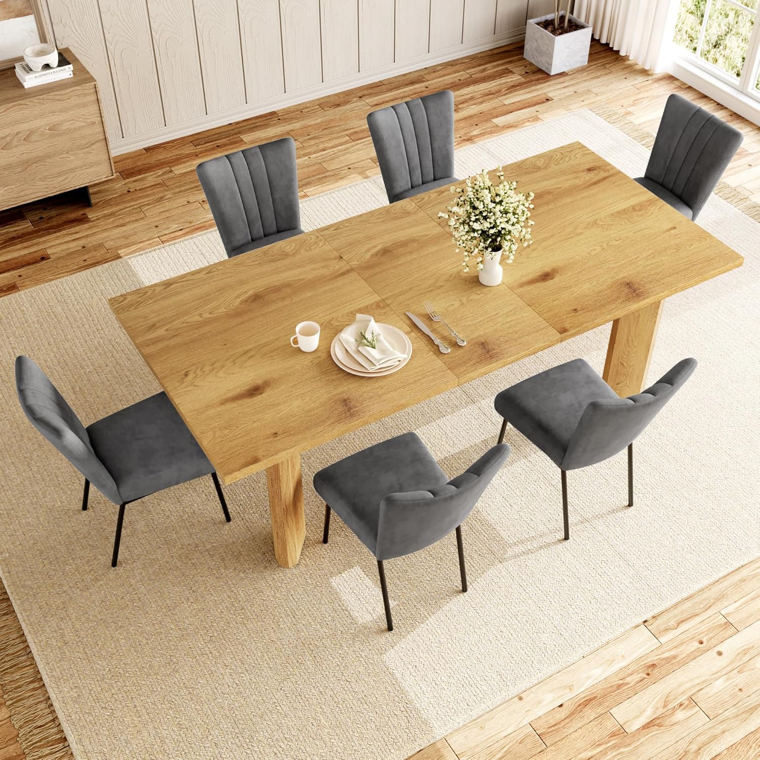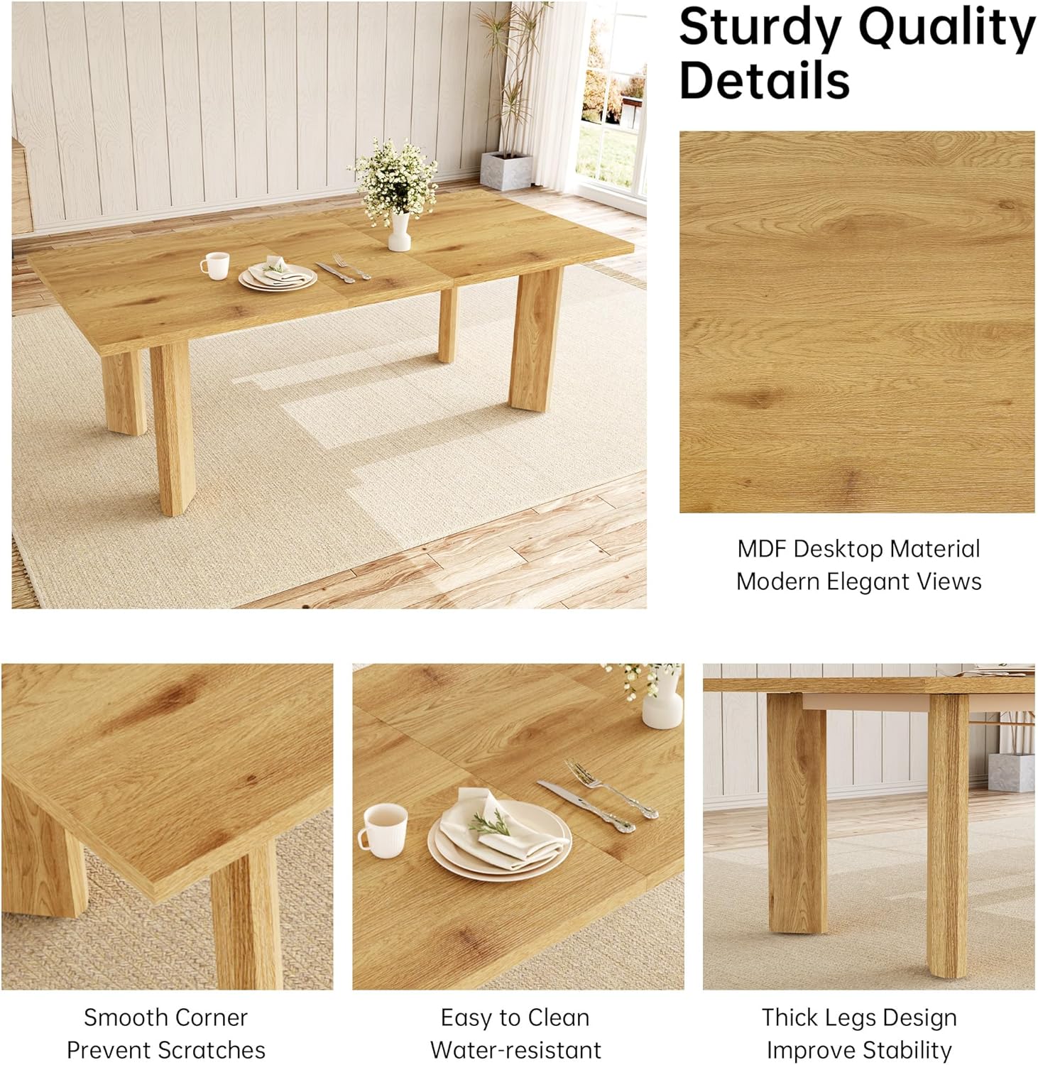 Durable Construction: Crafted from MDF tabletop, this wooden dining table is waterproof, heat-resistant, and scratch-resistant. Features wooden legs structure design, construction for exceptional stability. Adjustable feet protect your floors from scratches while keeping the table level on uneven surfaces.