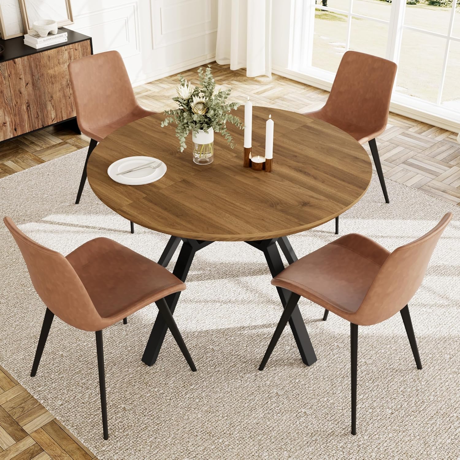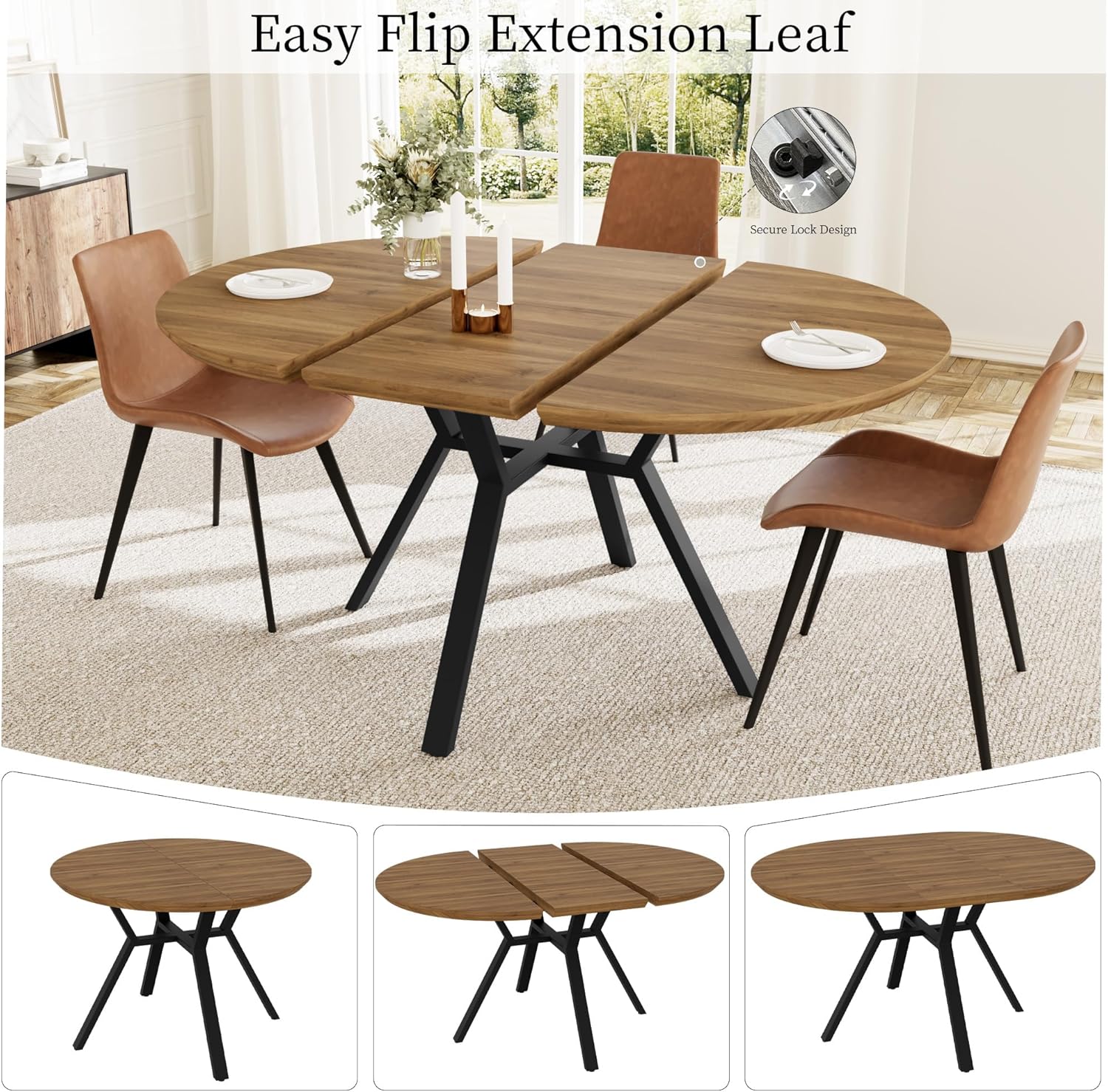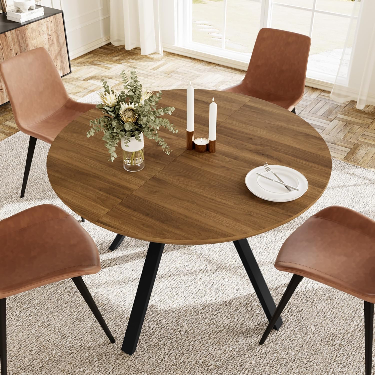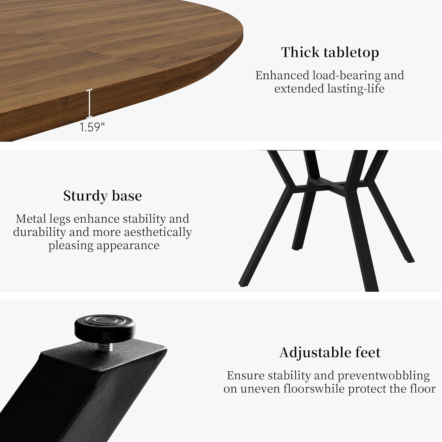 Durable and Sturdy: Crafted from high-quality MDF with a tabletop thickness of 1.57 inches, the round dining room table is water-resistant and waterproof. Supported by strong metal legs, it can hold up to 130 lb. Adjustable leg pads keep the table level on uneven floors, preventing floor scratches.