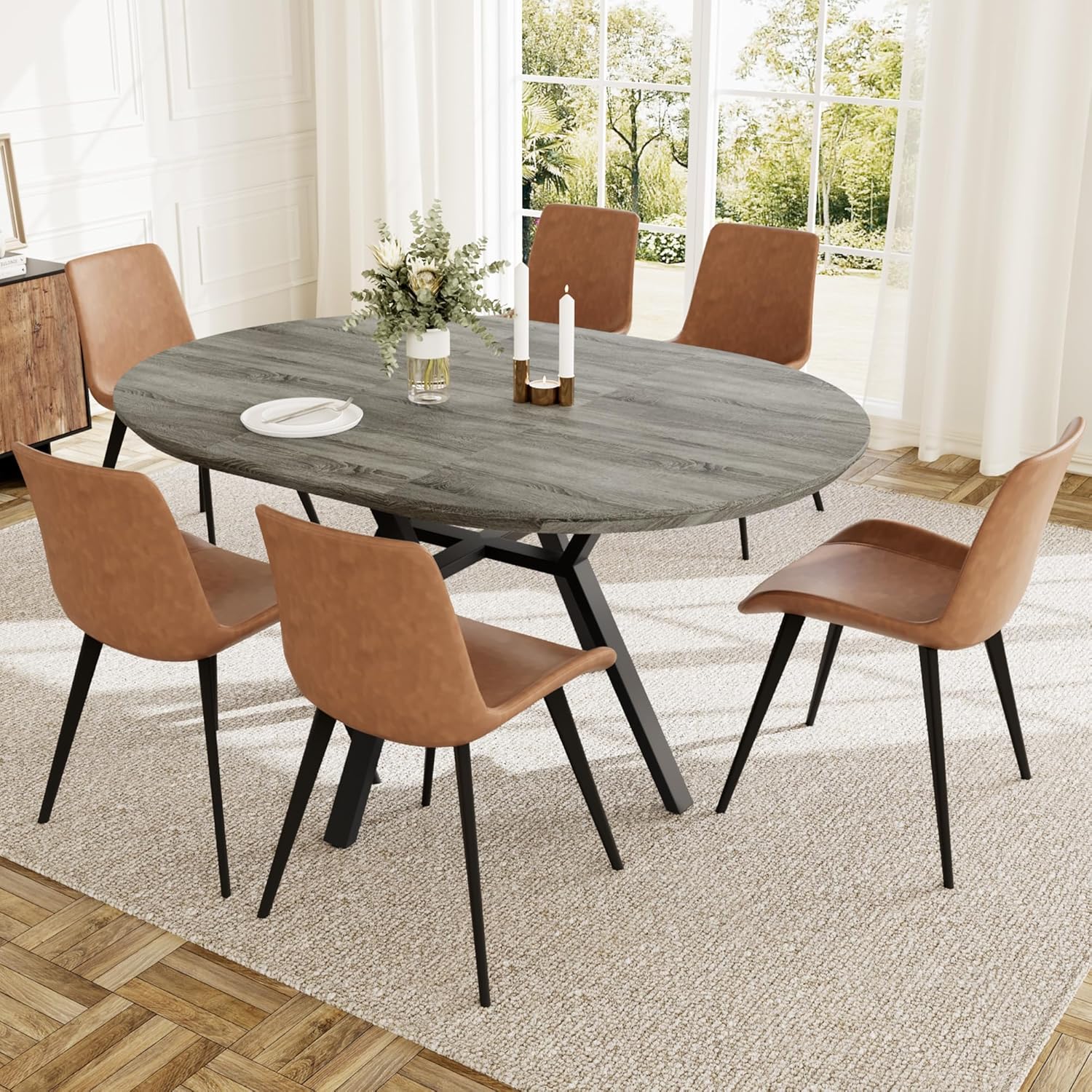 Durable and Sturdy: Crafted from high-quality MDF with a tabletop thickness of 1.57 inches, the round dining room table is water-resistant and waterproof. Supported by strong metal legs, it can hold up to 130 lb. Adjustable leg pads keep the table level on uneven floors, preventing floor scratches.
