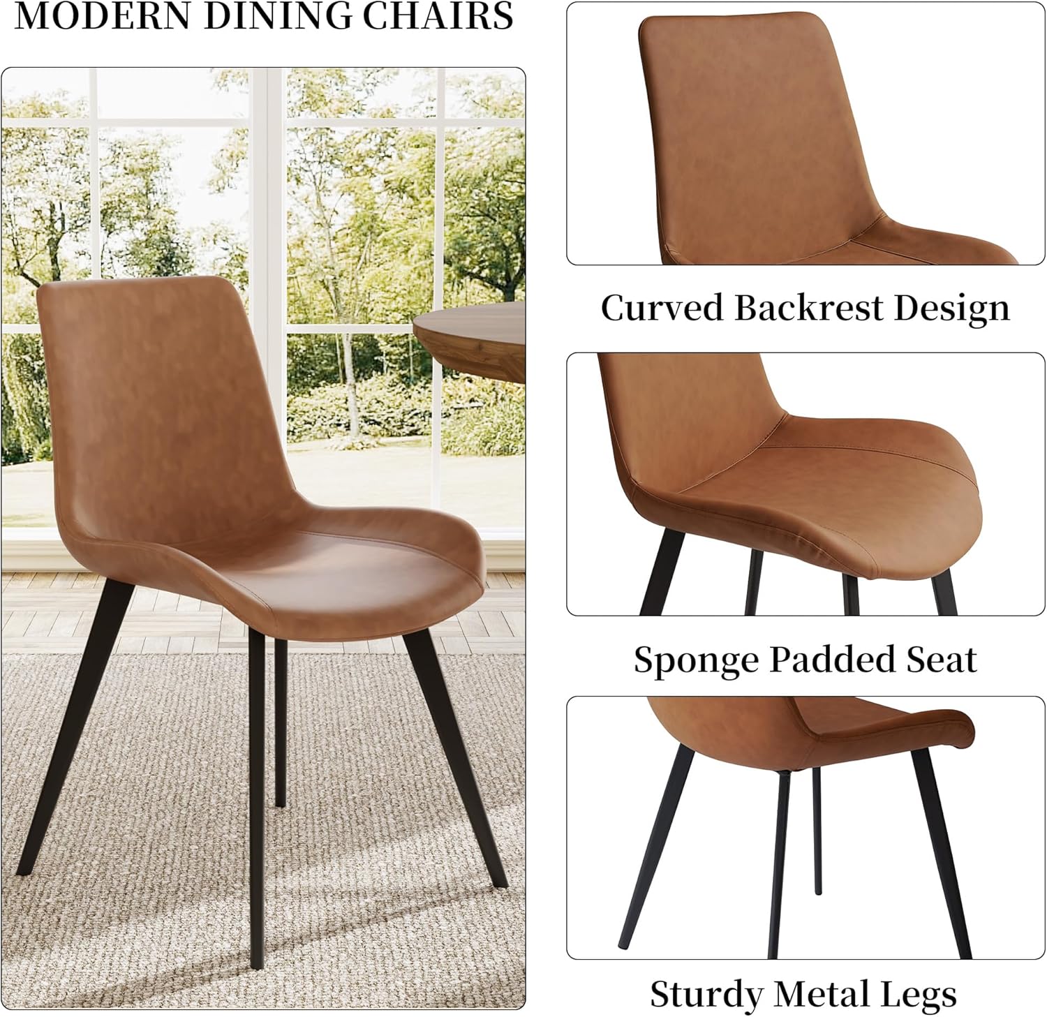 Ergonomic Dining Chairs: The modern kitchen chairs feature high-quality PU leather upholstery, ergonomic curved backs, and high elastic sponge for comfort and durability. And its incredibly easy to cleanjust wipe with a damp cloth to keep it.