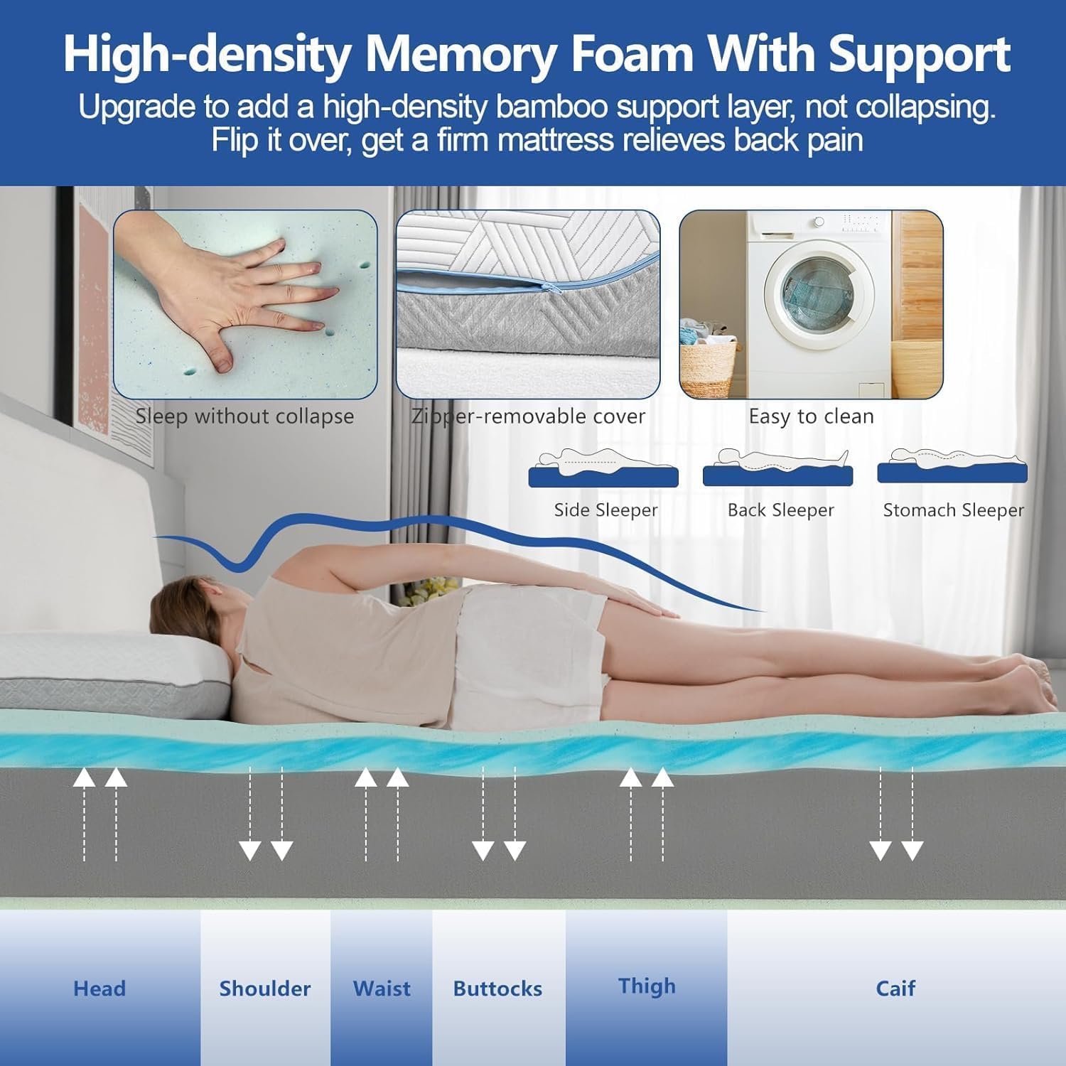 2-Sides Flip Mattress: Our updated 2-Side( 2 color cover/2 firmness) mattress offers more perfectly balanced comfort and support than a traditional mattress. Flip the foam side to meet your firmness needs. The white Plush Soft mattress side is more suitable for your body; the Grey extra-firm mattress is more supportive for your body for back pain.