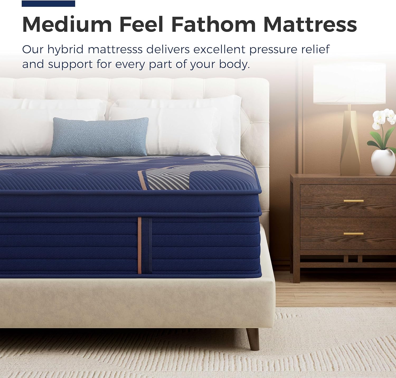 Enjoy Hybrid Philosophy: With all the benefits of the spring mattress, plus cooling gel memory foam, hybrid mattress features all the quality and durability to relieve pressure points for enhanced conforming comfort. This king hybrid mattress is designed for sleepers who want an extra bounce, added edge support, and a medium, classic feel.