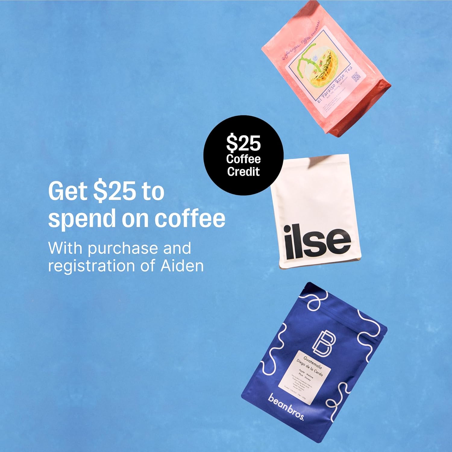 FREE SPECIALTY COFFEE: Receive a $25 gift card to shop our specialty coffees when you purchase and register your Aiden. Terms and conditions apply; see Products website for details.