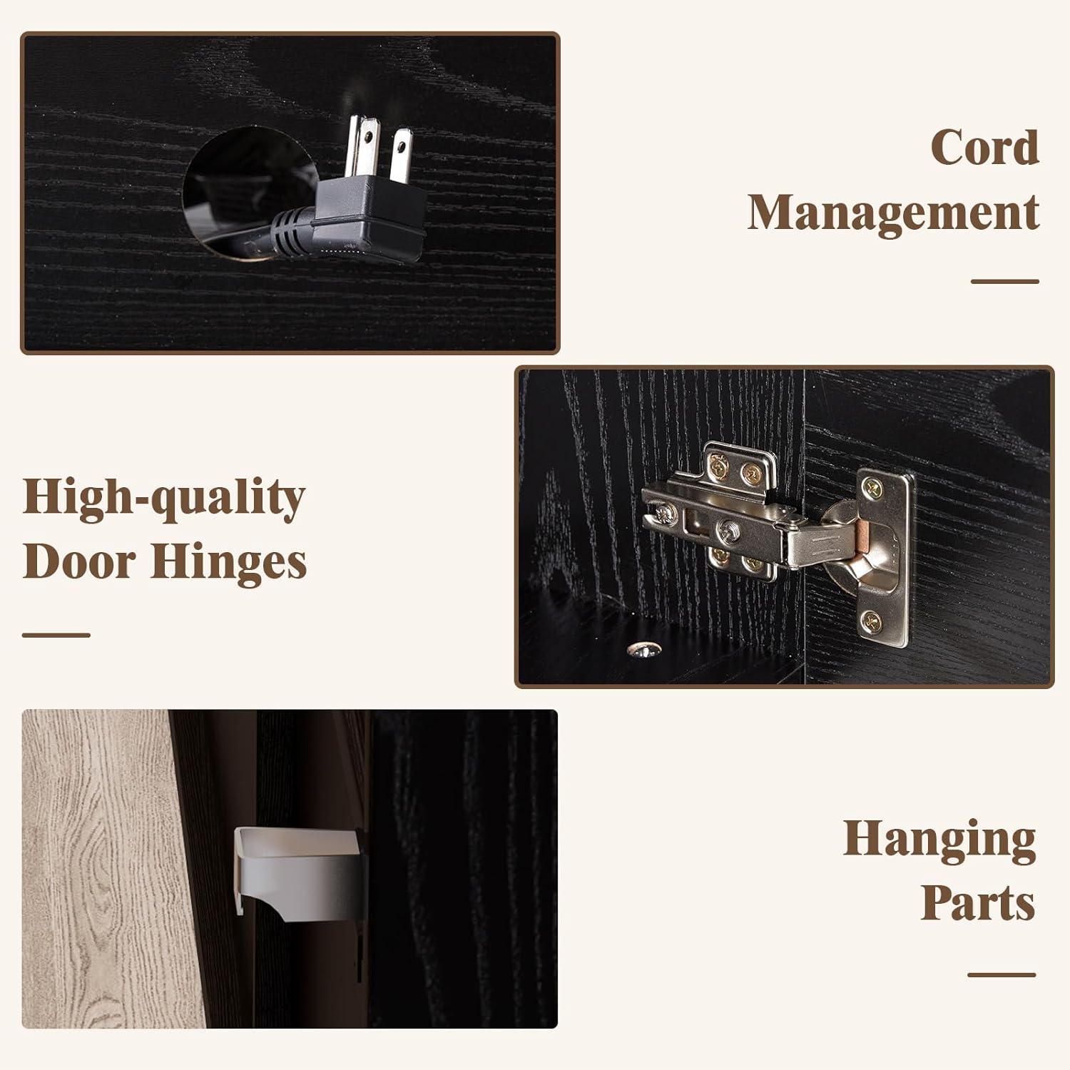 Large Storage SpaceSavings floor space & 3 ample open storage shelf and 2 large storage cabinet not only make it more convenient to store but also say goodbye to dead-end cleaning