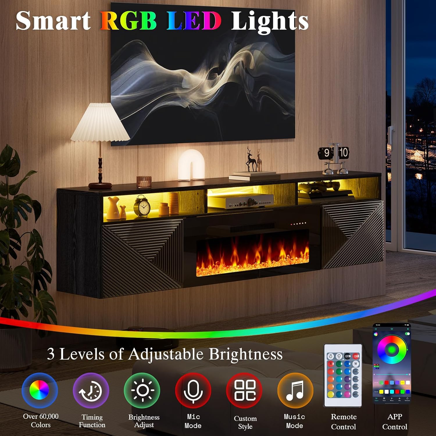 Smart LED LightEntertainment center with 8 colors LED light colors can be controlled by variety of ways. You can change the brightness and mode of the LED light according to your home atmosphere