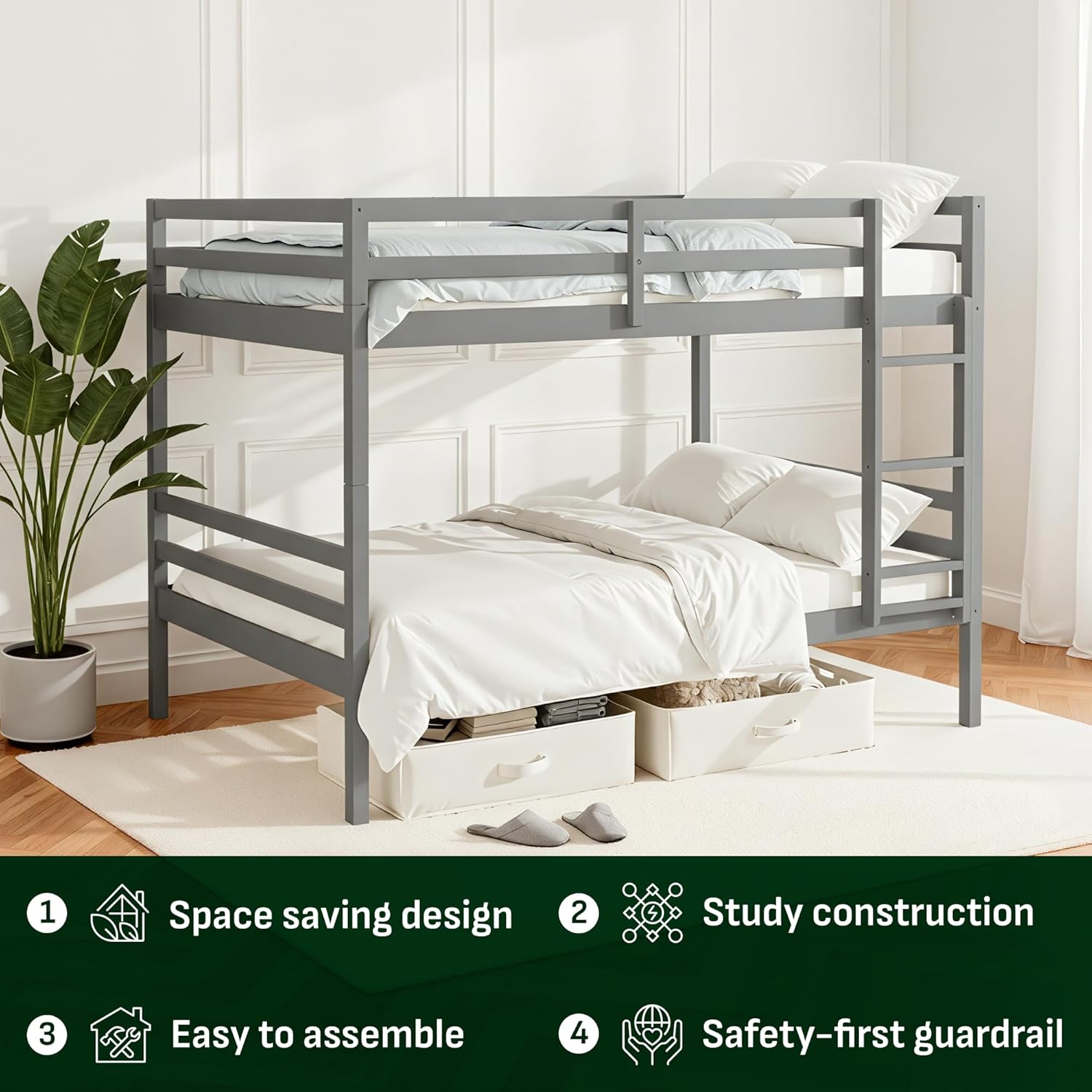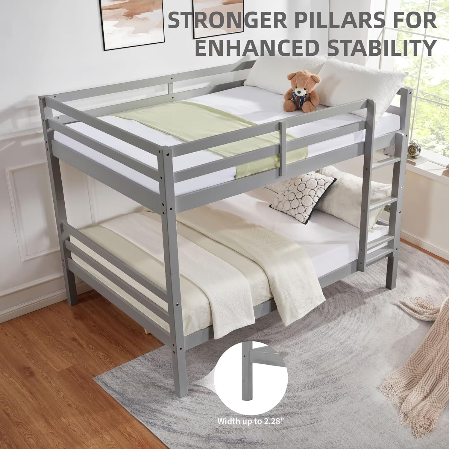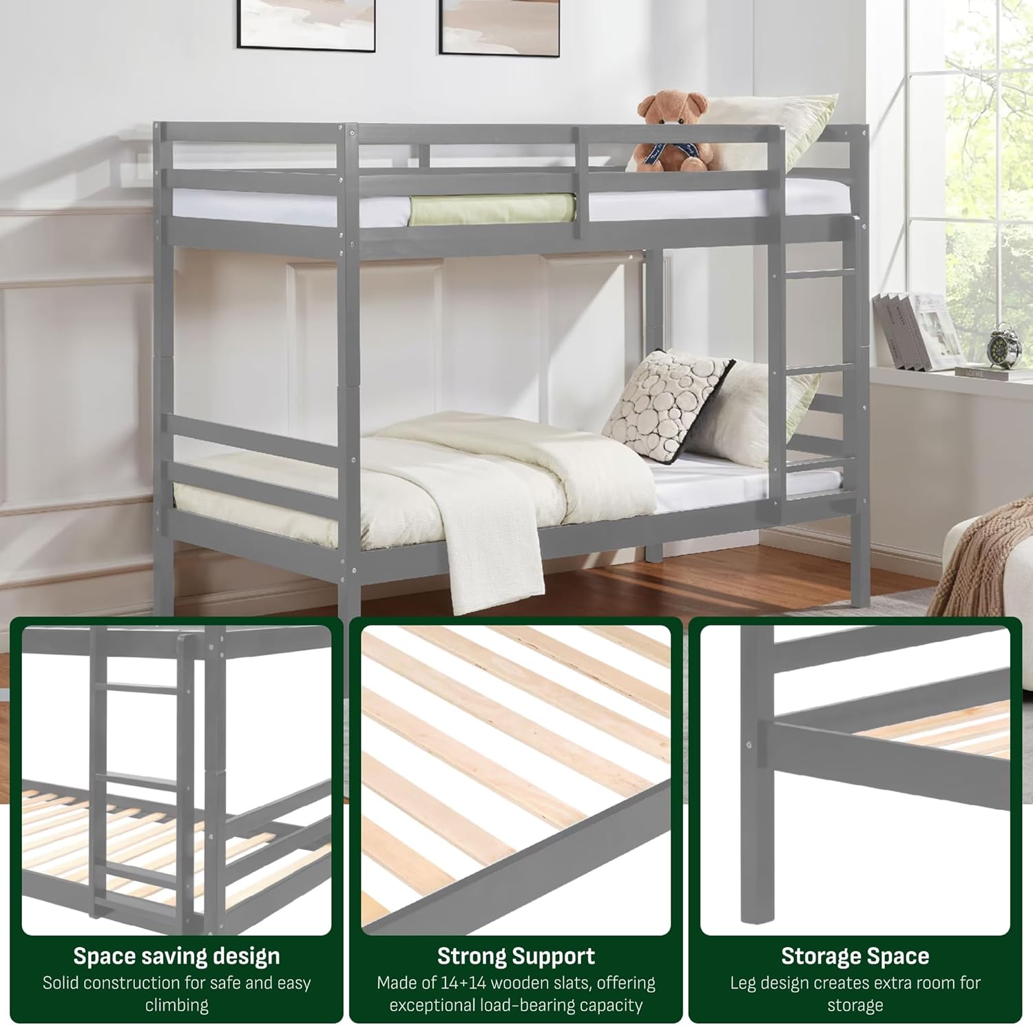 Durable Construction: Supporting up to 400 lbs, this sturdy bunk bed is built with robust wood slats and secure metal-to-metal connections, ensuring long-lasting stability and reliability.