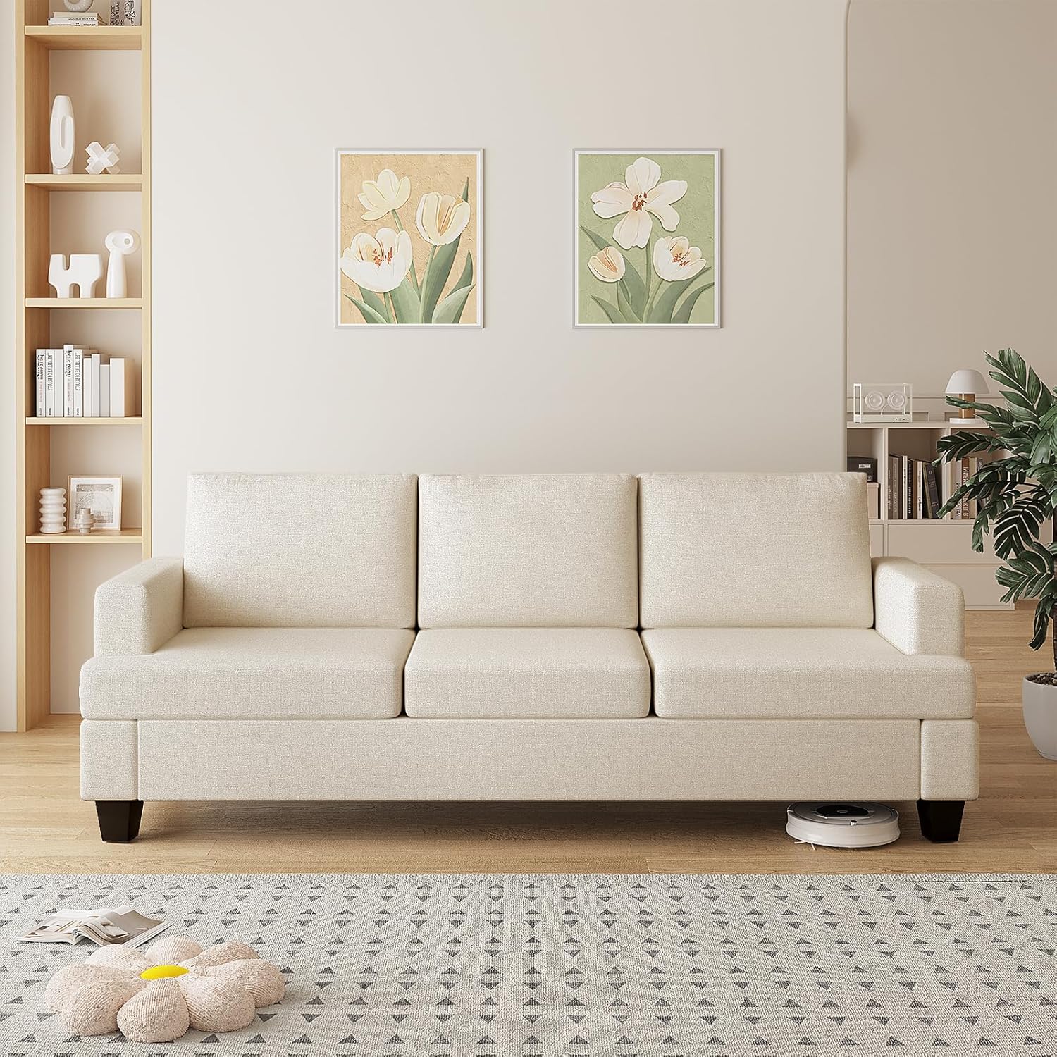 EASY TO CLEAN: The modern sofa is made of breathable linen fabric, which is skin friendly, durable, and easy to clean. The sofa pillow covers are removable, so you don't have to worry about stains dirtying the home sofa. In addition, the bottom of the living room couch and the floor are reserved with enough height, which can be easily accessed by the sweeping machine to keep the floor clean