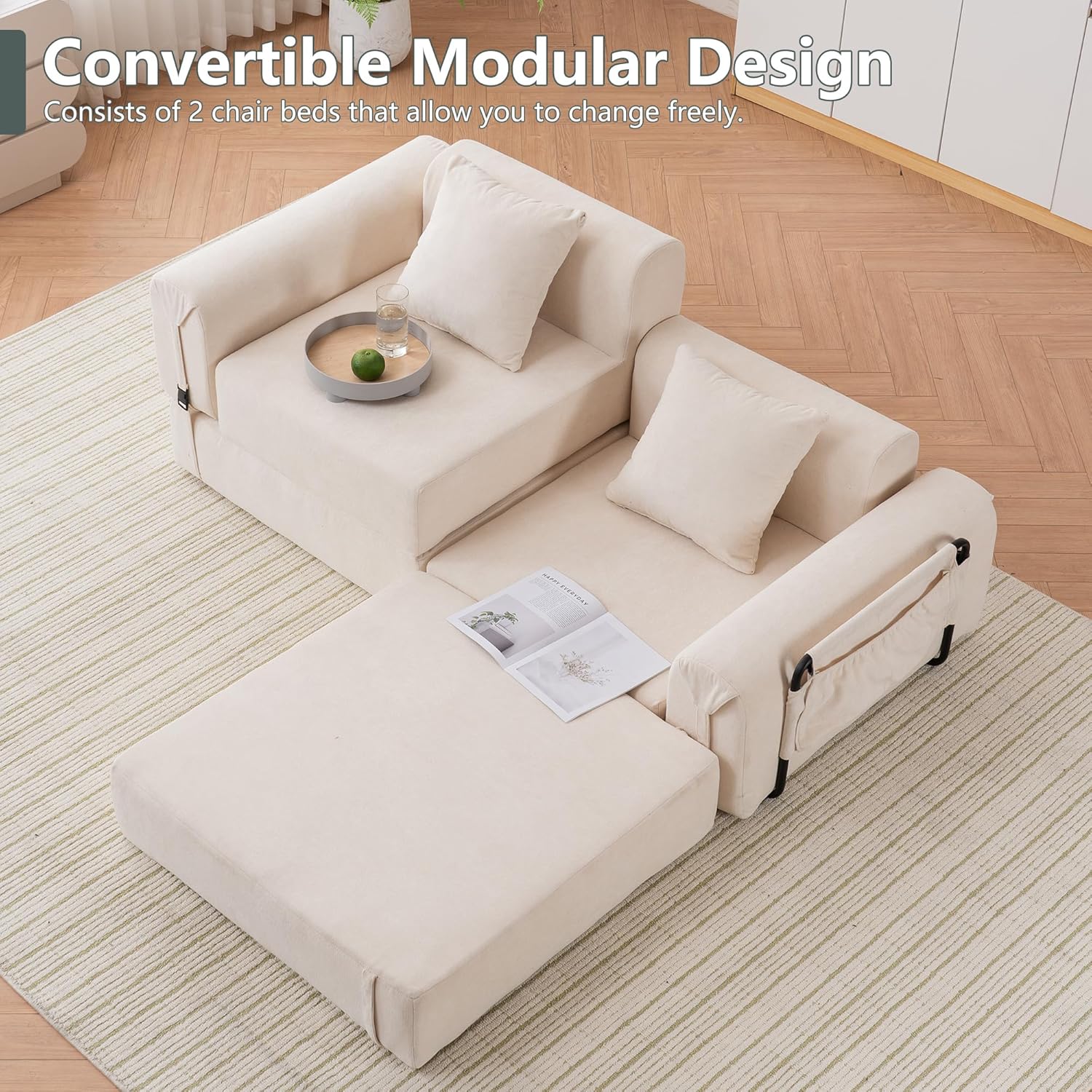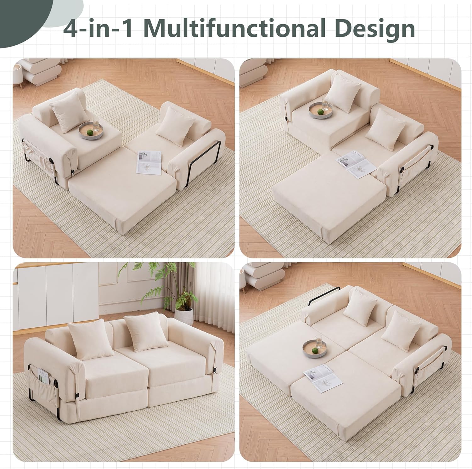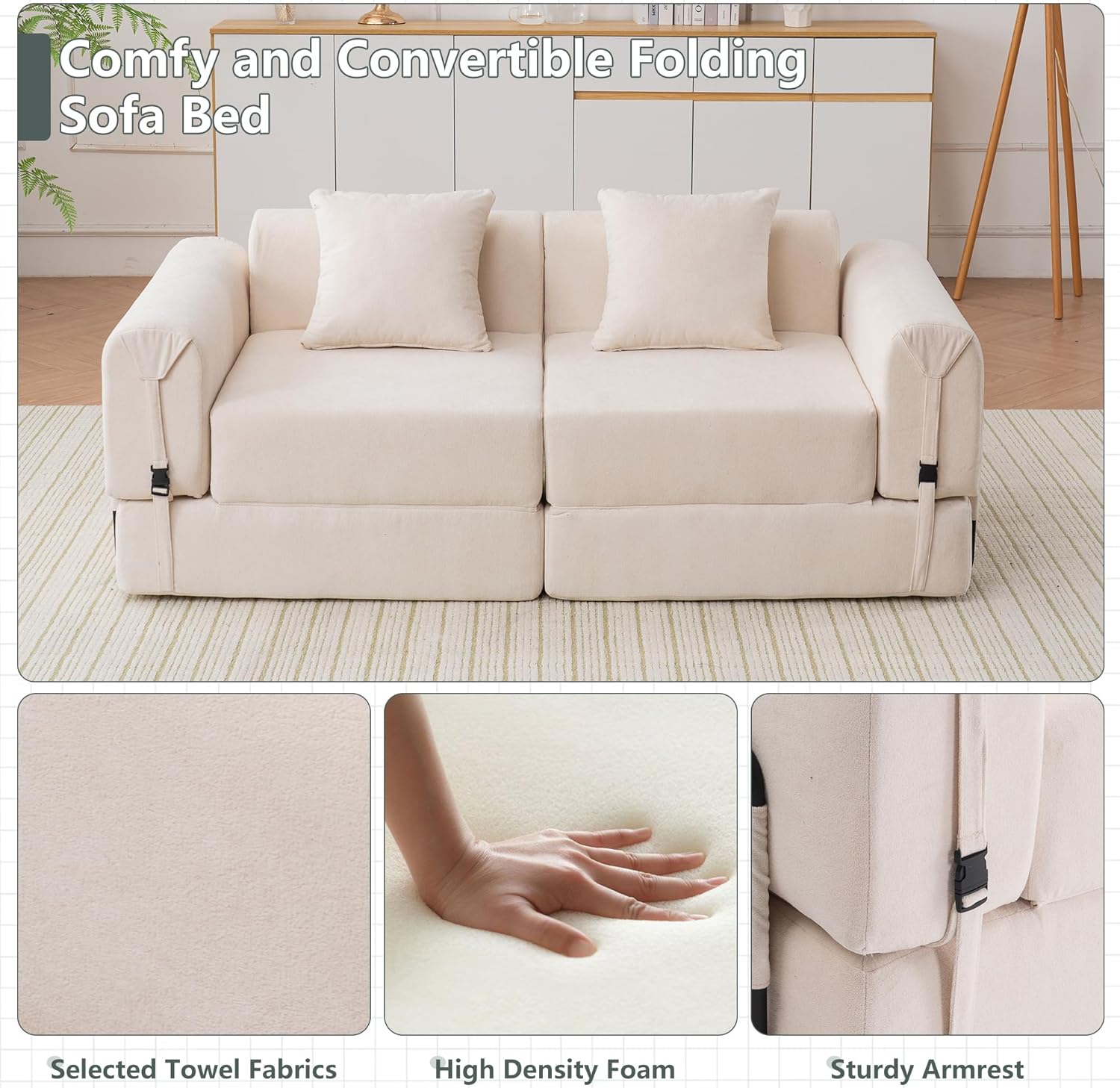 Elegant & Stylish: Our sofa bed is made of selected soft terrycloth. The sleek look is complemented by bright sofa colors for a sophisticated modern style and a warm, comfortable atmosphere, allowing for various configurations to suit your lifestyle and living room decor, ideal for apartments, living room, guest room and bedroom.