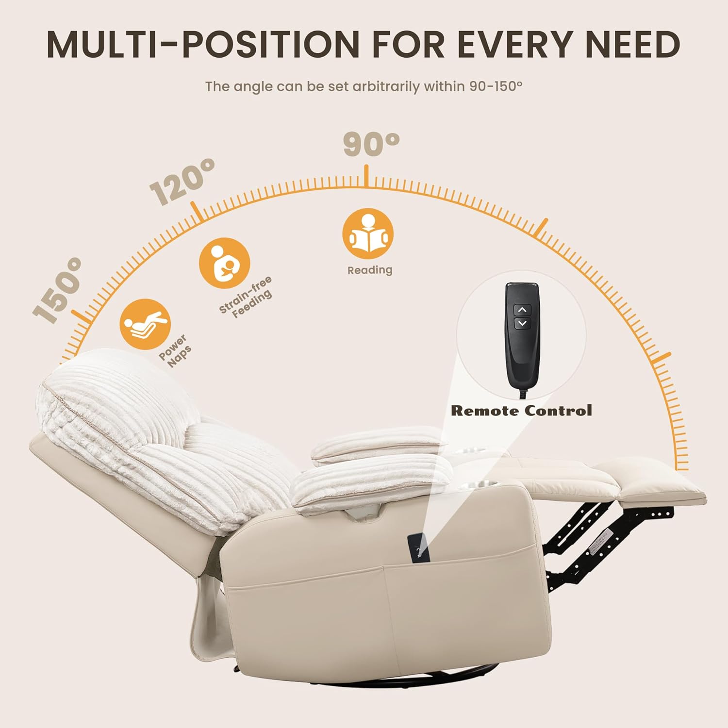 [Power Recliner Chair for Full-Body Relaxation & Comfort] With the simple touch of a button, this power recliner effortlessly reclines to a comfortable 130-degree position while the extended footrest glides out smoothly. The adjustable backrest delivers exceptional support, making it an ideal choice for new mothers, expectant moms, or anyone in need of superior comfort and relaxation. Perfect for any living room, it offers a cozy spot for reading, watching movies, or enjoying a restful nap.