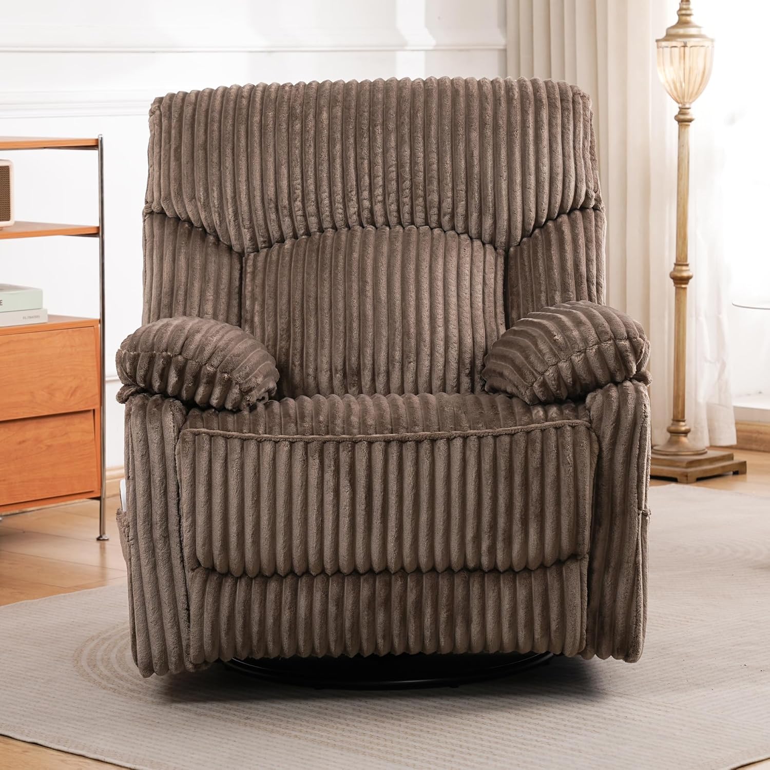 • GRAINELL Swivel Rocker Recliner Chair with Massage and Heat, USB Charging Port, Infinite Position Power Recliner, Electric Glider Rocking Chairs for Living Room, Nursery (Brown)
