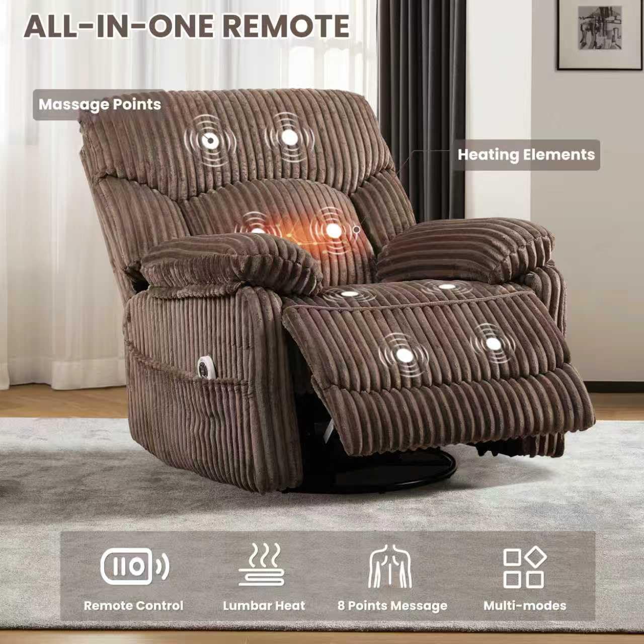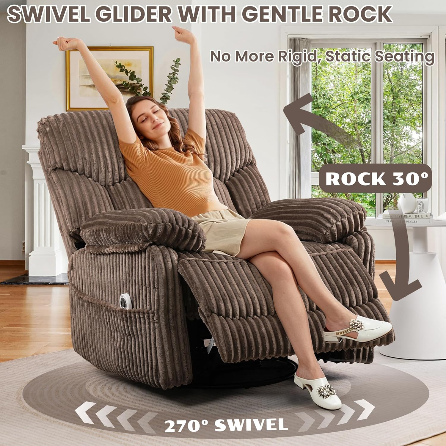 Dynamic Motion: 270 Swivel & Rocker : Built on a robust metal base, the chair provides dynamic movement with a 270 swivel and a gentle 30 rocking (glider) motion, making it an excellent glider rocking chair. The combined massage and lumbar heat system offers targeted relief for muscle fatigue and no more lower back stiffness from long-term sitting.