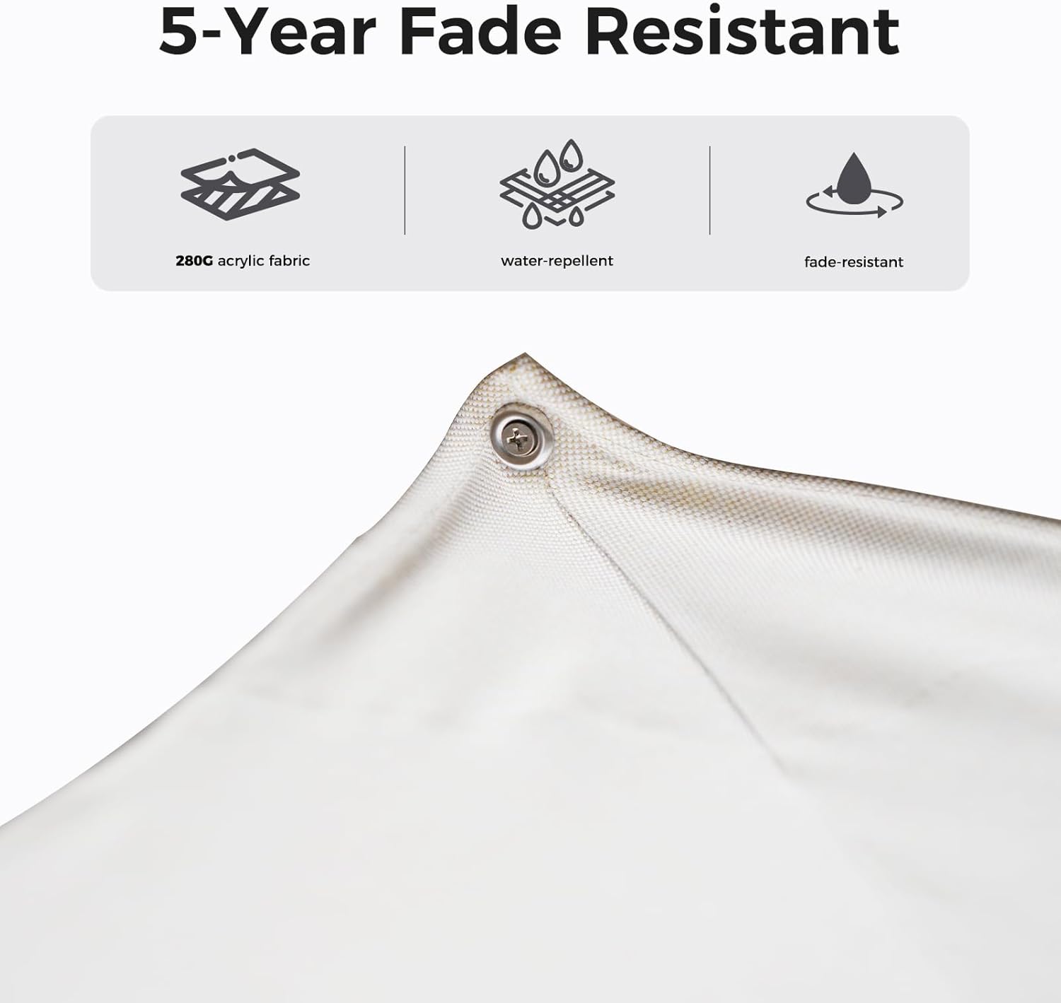 Premium Canopy: High-quality beige 280 g acrylic fabric with UPF50+ anti-UV coating provides 5-year fade-resistant and water-repellant properties. This 10x10 FT double sided patio umbrella provides wide coverage of approximately 200 square feet from the sun which is ideal for your family and customers at the backyard, pool or shop