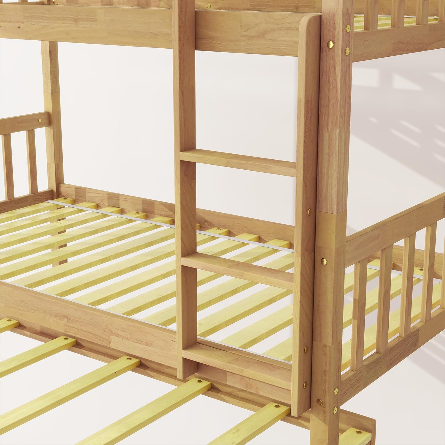 Full Guardrails: Includes full length guardrails on top bunk and a side removable ladder to easily access to the upper twin bed, sturdy climbing for your child