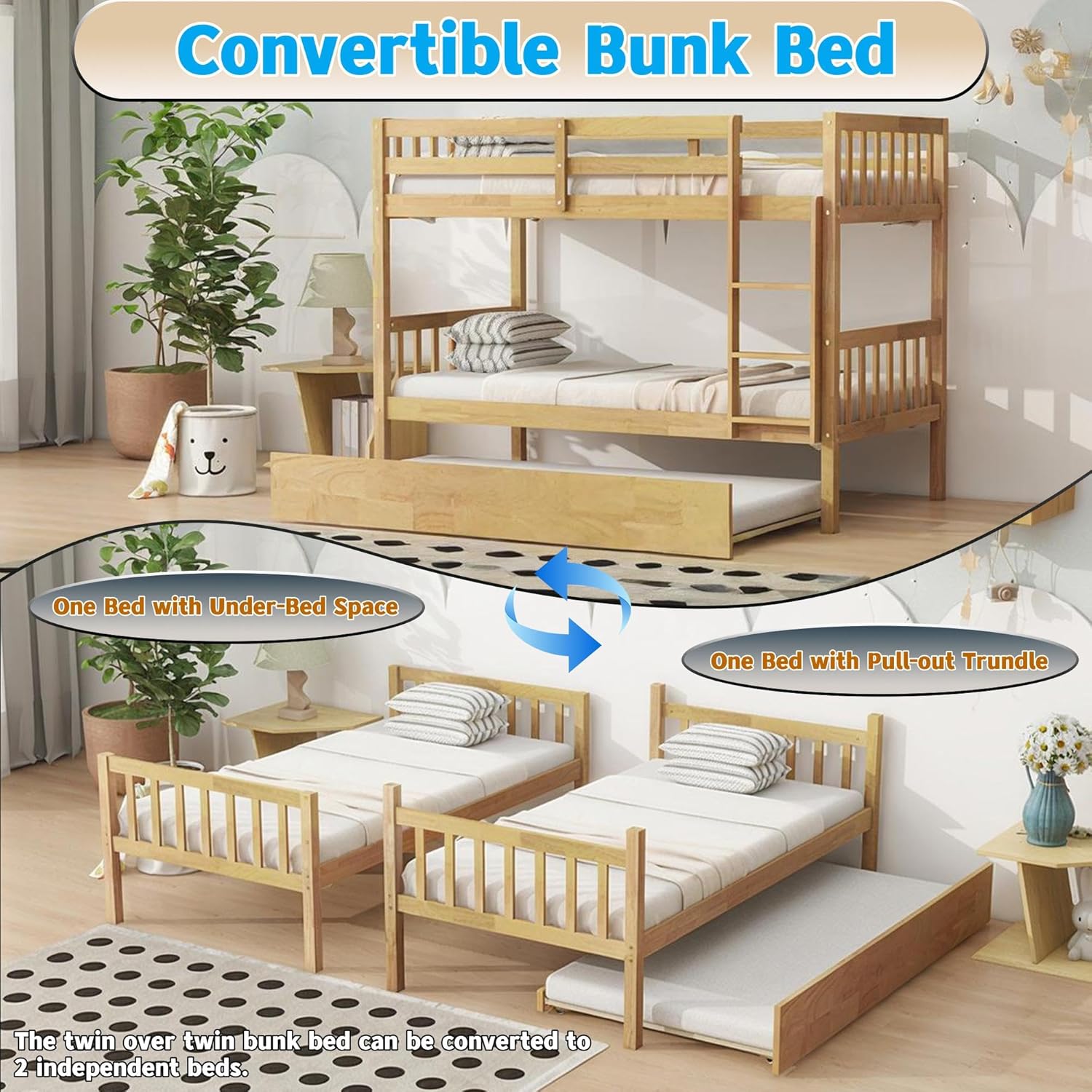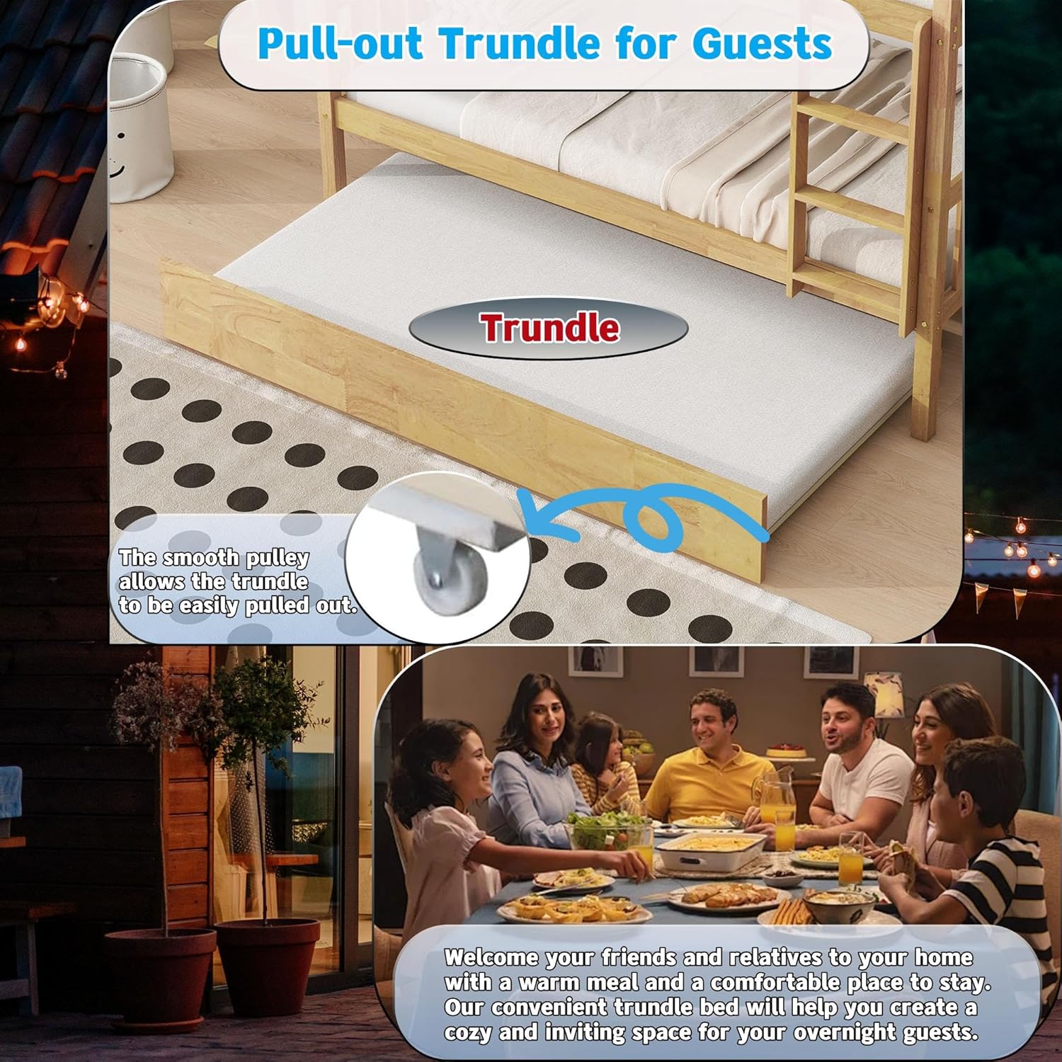 Pull-Out Trundle for Guests: Effortlessly pull out the trundle to create a separate bed for overnight guests, providing a comfortable and enjoyable staycation experience. The trundle is the perfect way to create unforgettable memories with your guests