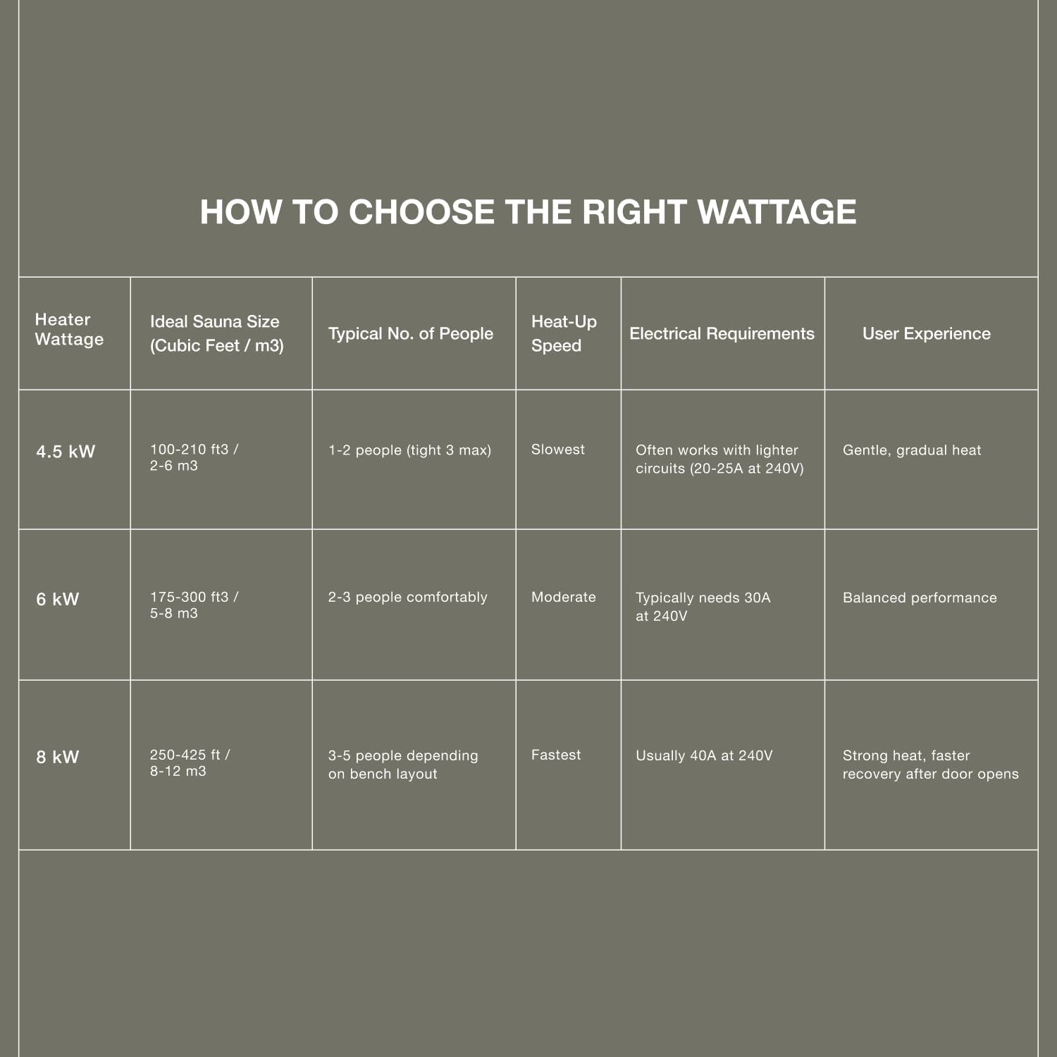 Efficient Sauna Heater: This is built for sauna rooms ranging in size from 100-425 ft that heats quickly and efficiently through the premium, powerful range of 4.5-8kW heating capacity dependent on model.