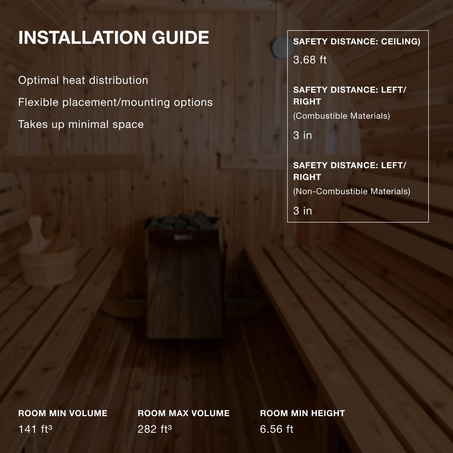 220V Premium Home Sauna Kit: Our 220V model is perfect for medium sized dry heat saunas. Extra-long heating elements will last longer and transfer heater more smoothly to the stones and sauna room. The Wall's design allows for improved air circulation to enjoy steady warmth.