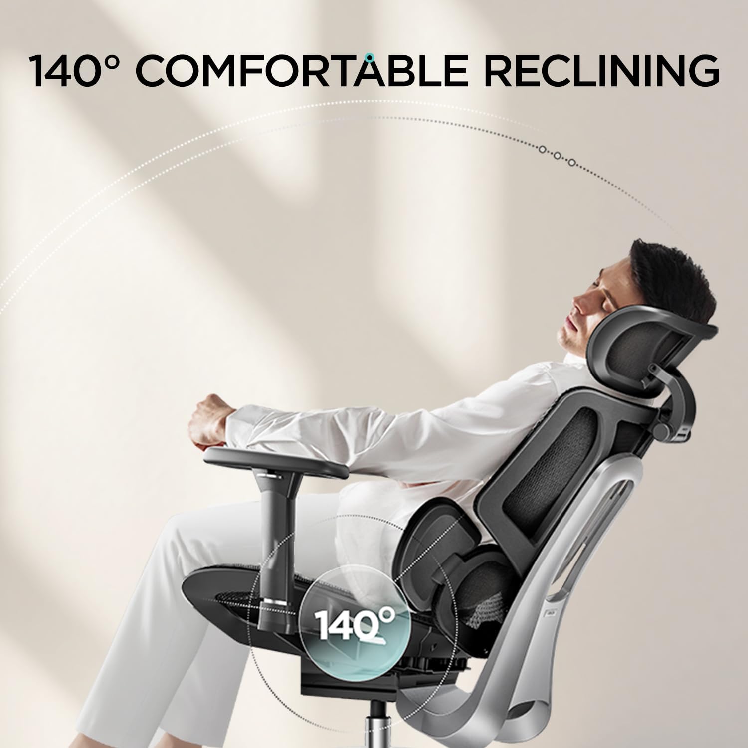 Enjoyable Sitting & RecliningThe sitting experience of E3 Air Ergonomic Office Chair is also outstanding. The fully breathable and durable mesh design and 1.97'' adjustable seating depth makes your sitting cool and it precisely supports the leg length of different heights and postures. When you get tired, just recline and take a nap with 140 Comfortable Recling and Gravity-sensing Chassis. *Lean the backrest backward and simultaneously pull out the operating lever to recline the chair back. Insert the operating lever to fix the angle.