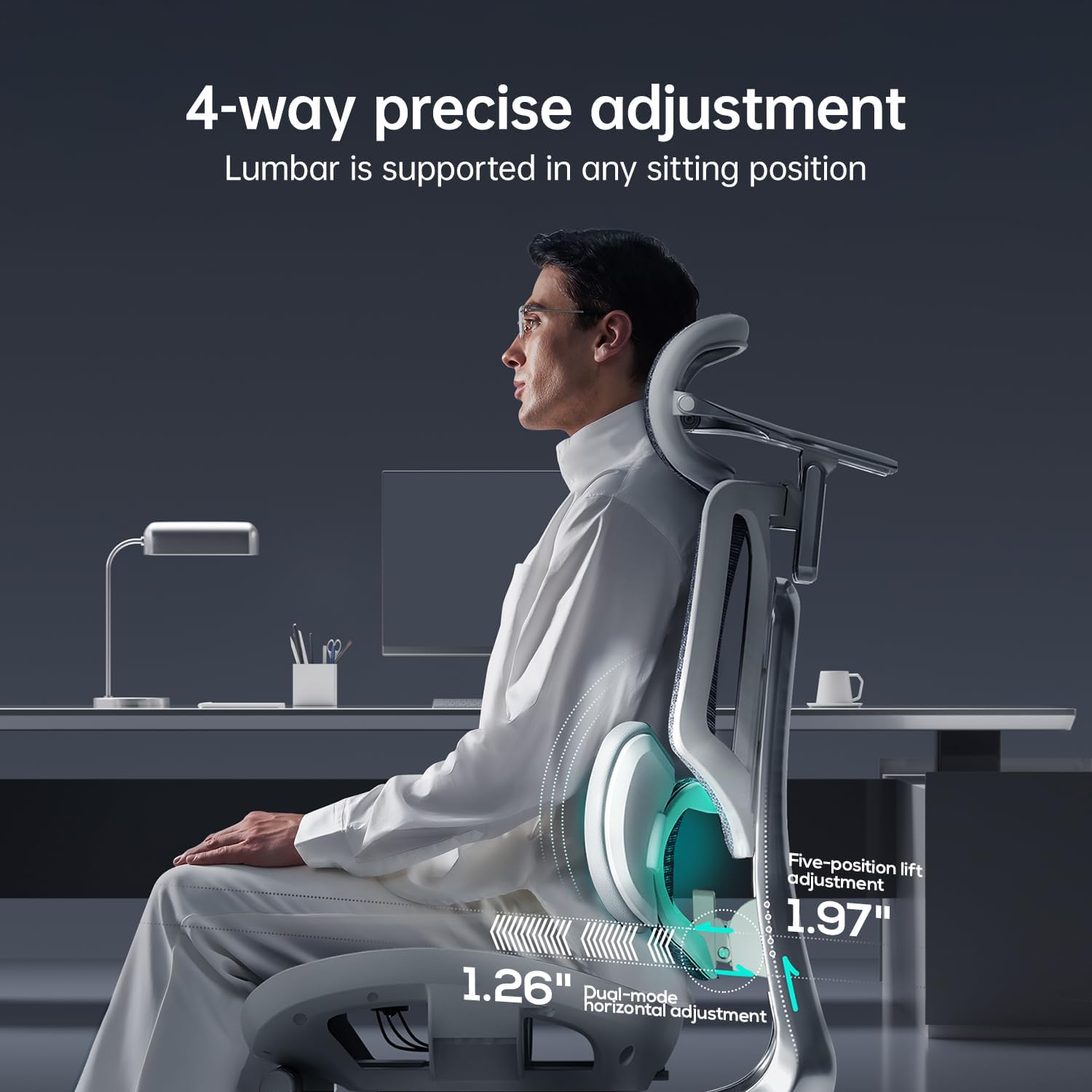 3-Zone Dynamic Lumbar Support: The lumbar support of E3 Ultra office chair realizes dynamic support with 8-way adjustment to prevent any discomfort in the waist or back.
