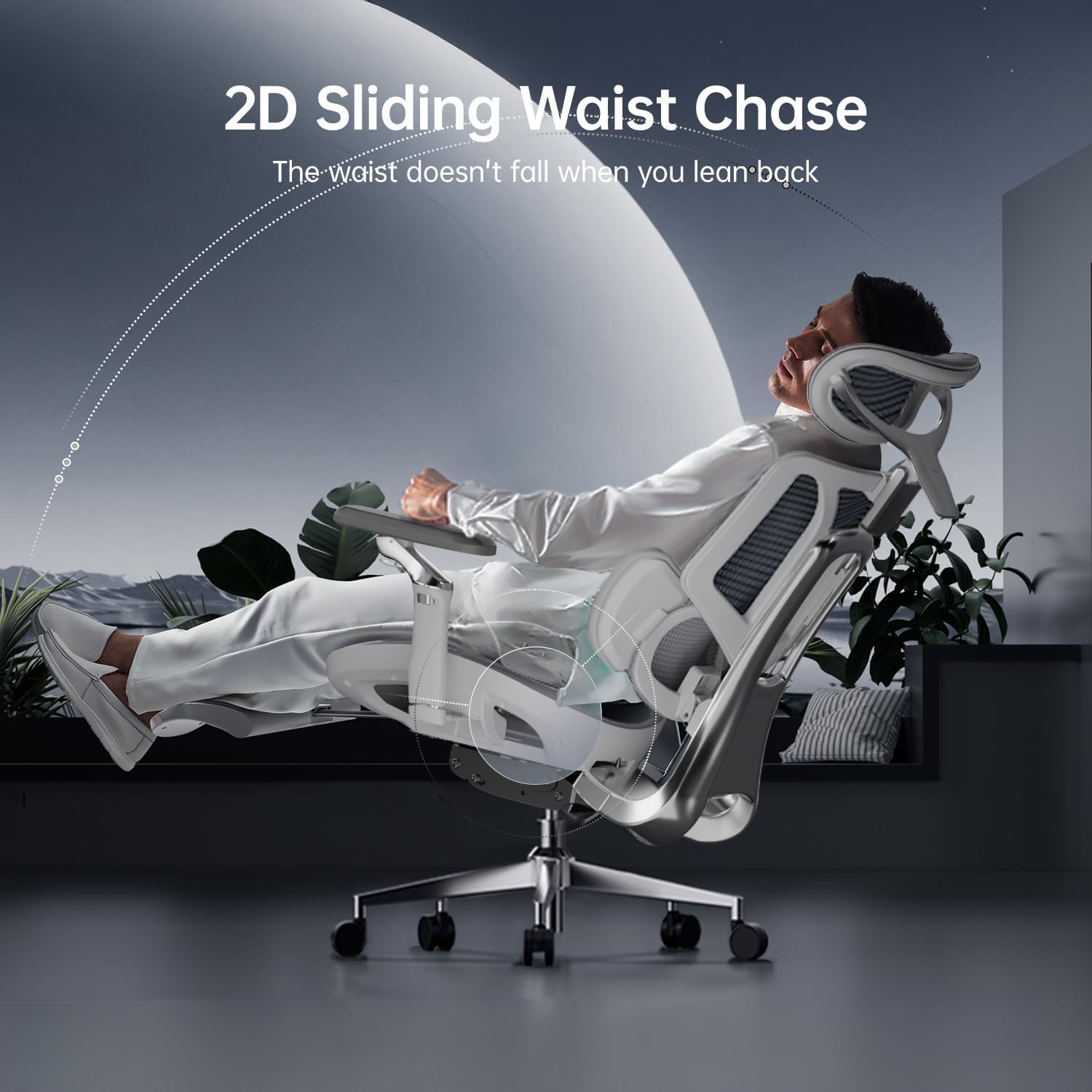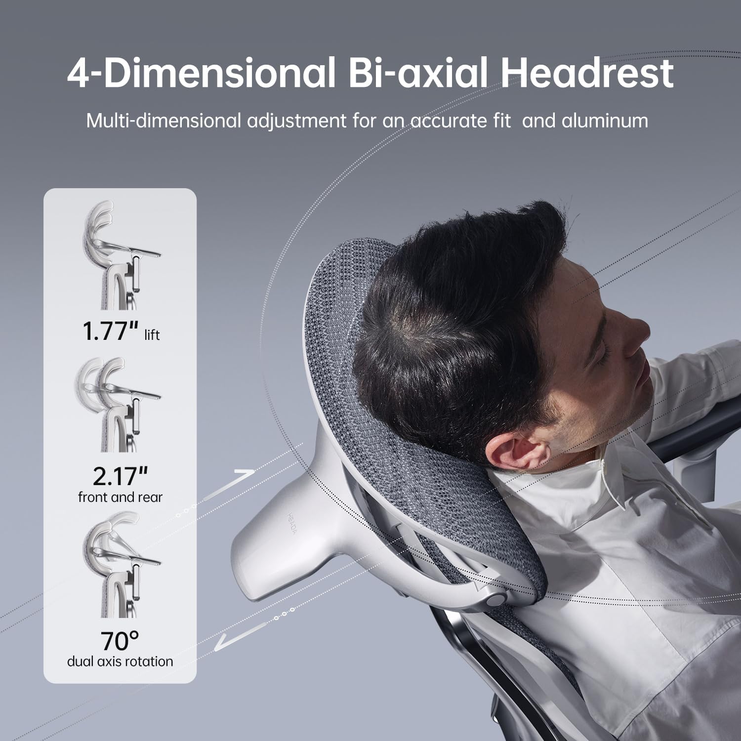 4D Biaxial Adjustable Headrest: The headrest of E3 Ultra desk chair can be adjusted in 4 dimensions, to fully support neck and head in any position as you like.