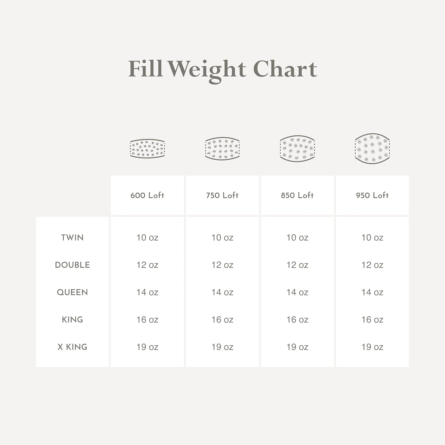 600 Loft White Goose Down Filled with a minimum of 75% ethically sourced white goose down cluster at 600 fill power, with the remaining 25% consisting of natural down fibers and minimal feather content resulting from down processing and transportation. This down comforter (also known as down duvet or duvet insert) delivers reliable warmth without overheating. Its natural insulation wicks moisture and breathes naturally, ensuring comfortable sleep without night sweats.