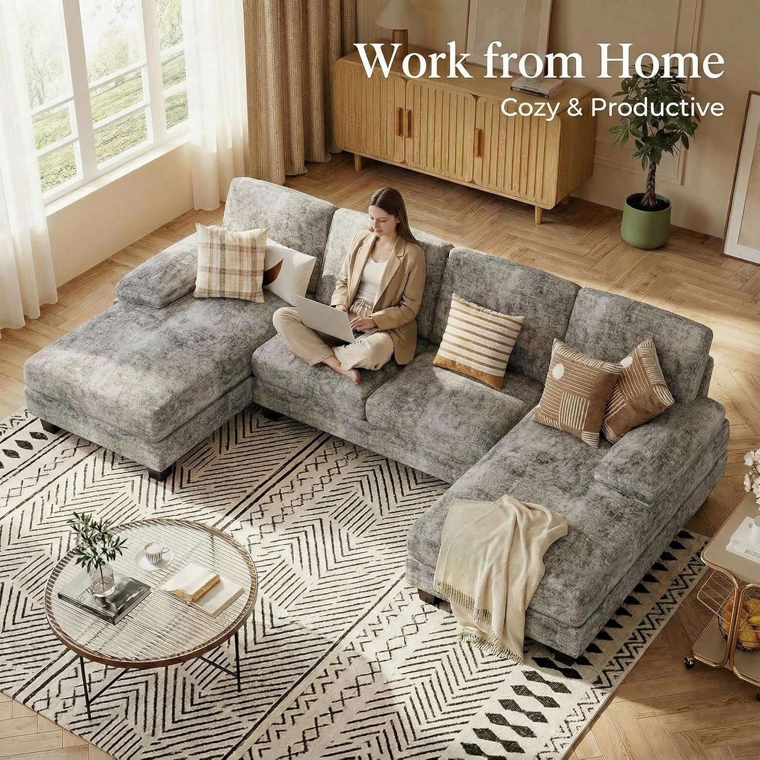Modern U-Shaped Design - The contemporary U-shape and elegant lines seamlessly complement any decor style. Featuring a double chaise lounge, it allows multiple people to stretch out and relax simultaneously. With its simple yet elegant silhouette, it pairs perfectly with any modern living space, apartment, or contemporary home decor.