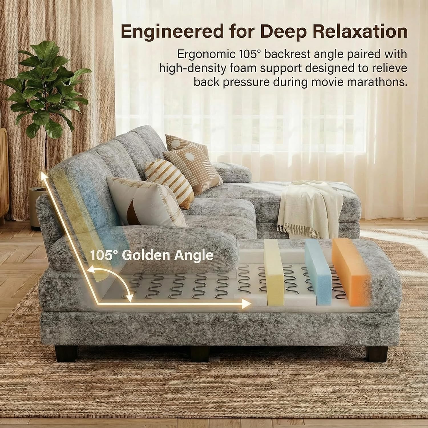 Optimal Dimensions - Our U-shaped sofa couches measures 106"W x 47.8"D x 32.2"H, providing excellent leg support. This ideal size strikes a balance between spacious comfort and compact design, making it suitable for smaller living spaces as well as cozy corners in larger homes.