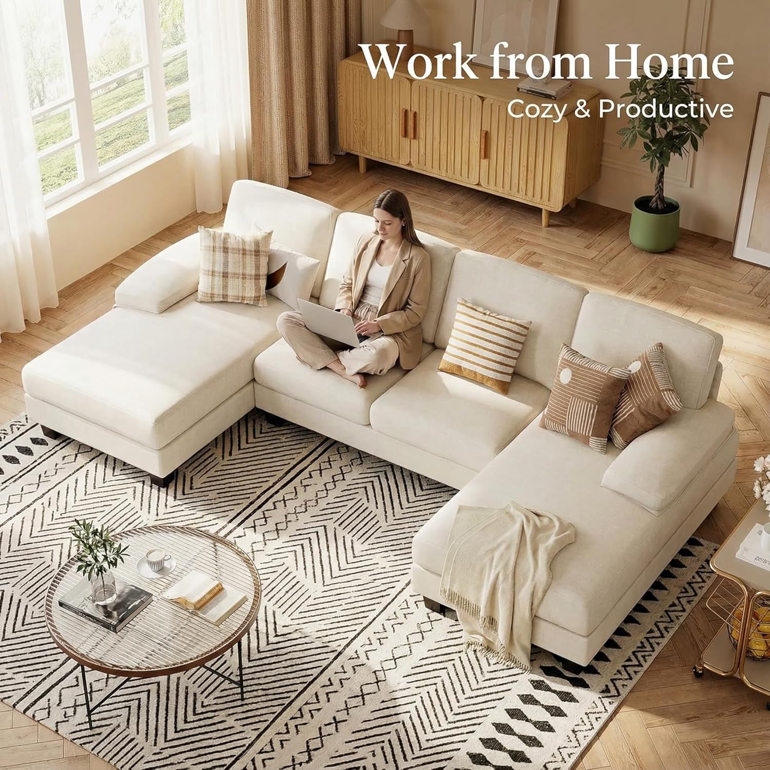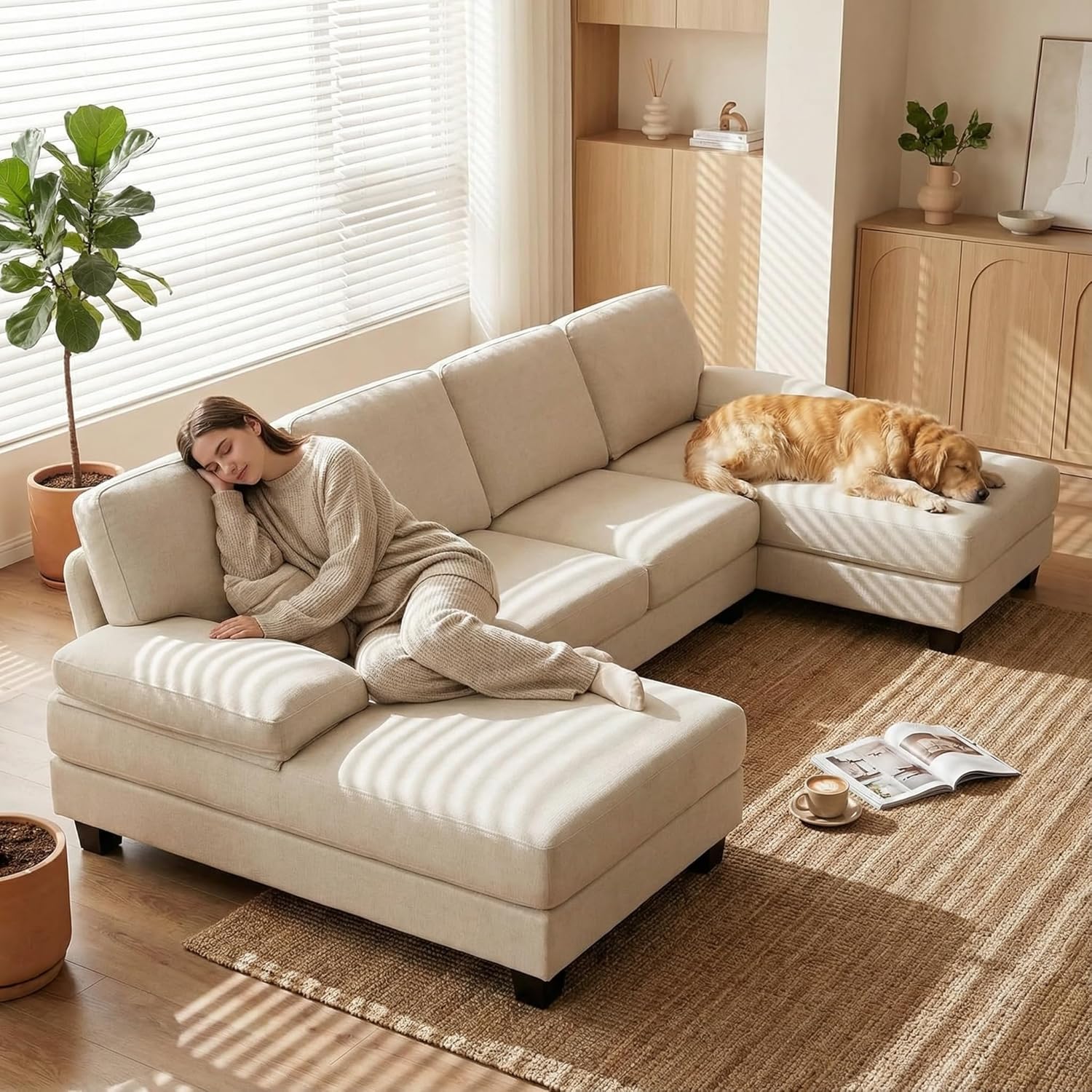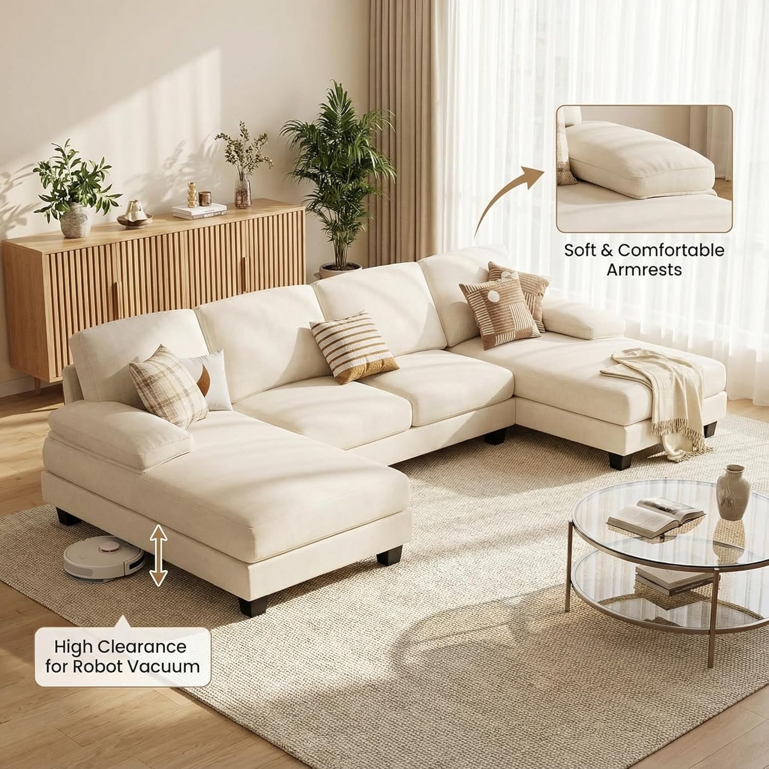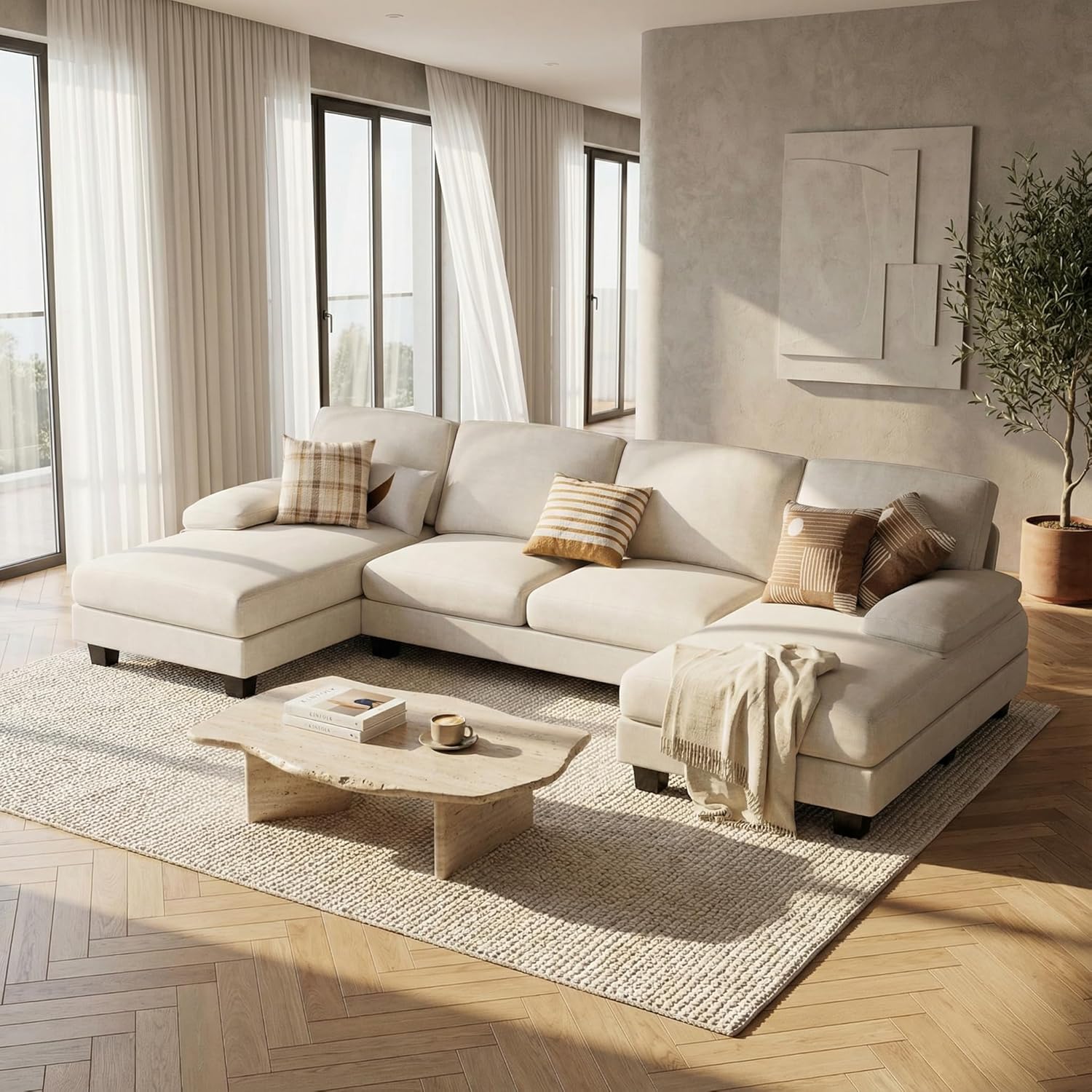 Modern U-Shaped Design - The contemporary U-shape and elegant lines seamlessly complement any decor style. Featuring a double chaise lounge, it allows multiple people to stretch out and relax simultaneously. With its simple yet elegant silhouette, it pairs perfectly with any modern living space, apartment, or contemporary home decor.