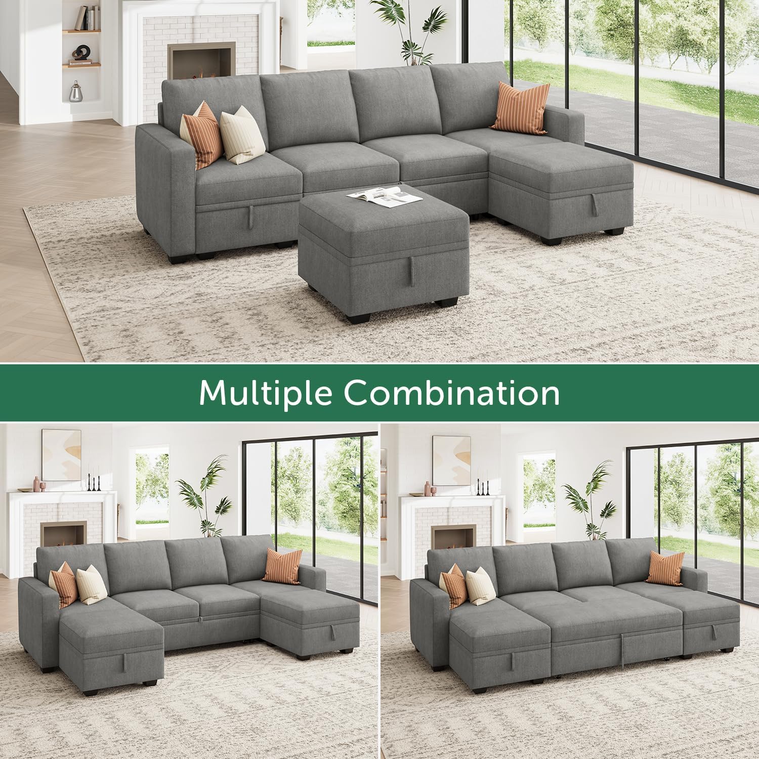 Storage Seats: Keep your living room organized with hidden storage space in the single seat, ottoman, and loveseat. These discreet spaces are perfect for storing blankets, pillows, and other essentials, maintaining a tidy and functional living area