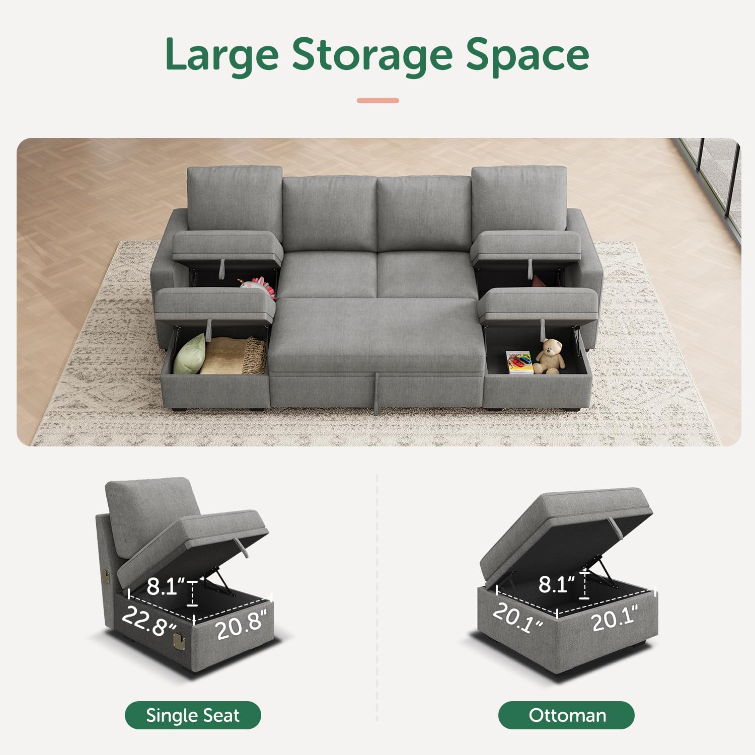 Storage Seats: Keep your living room organized with hidden storage space in the single seat, ottoman, and loveseat. These discreet spaces are perfect for storing blankets, pillows, and other essentials, maintaining a tidy and functional living area