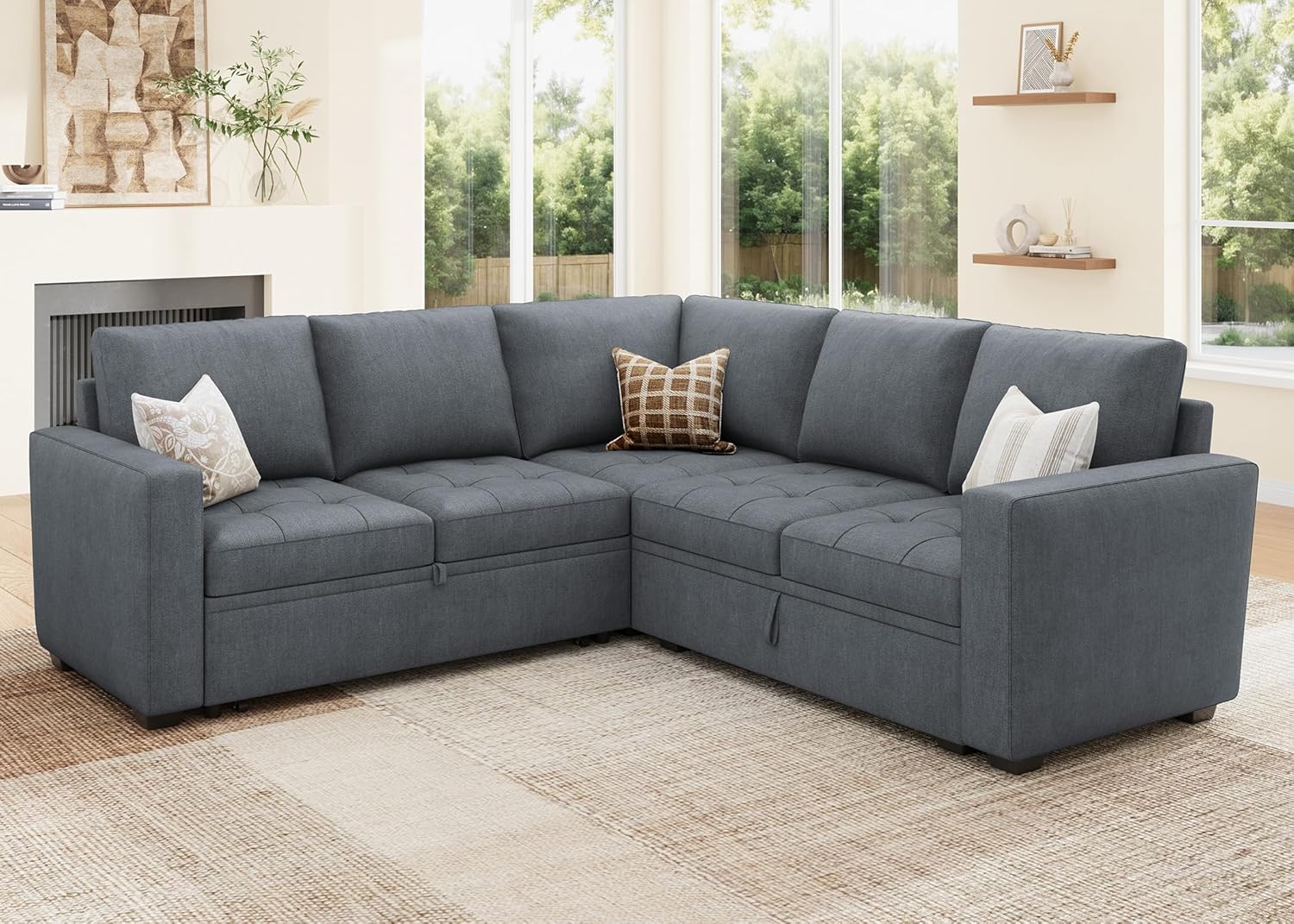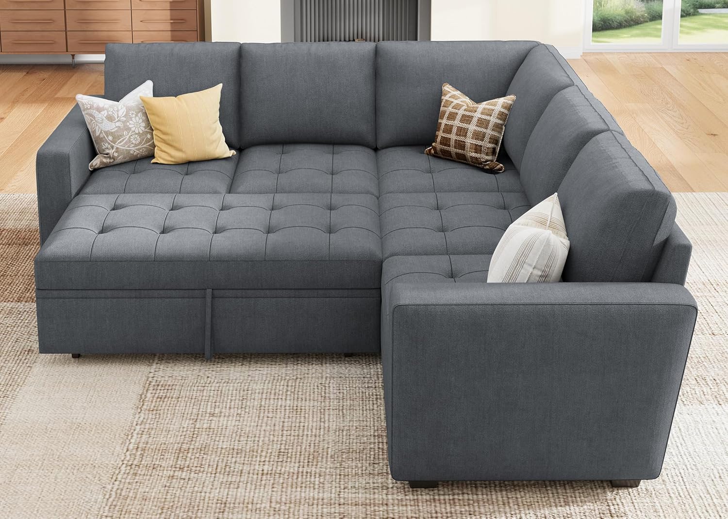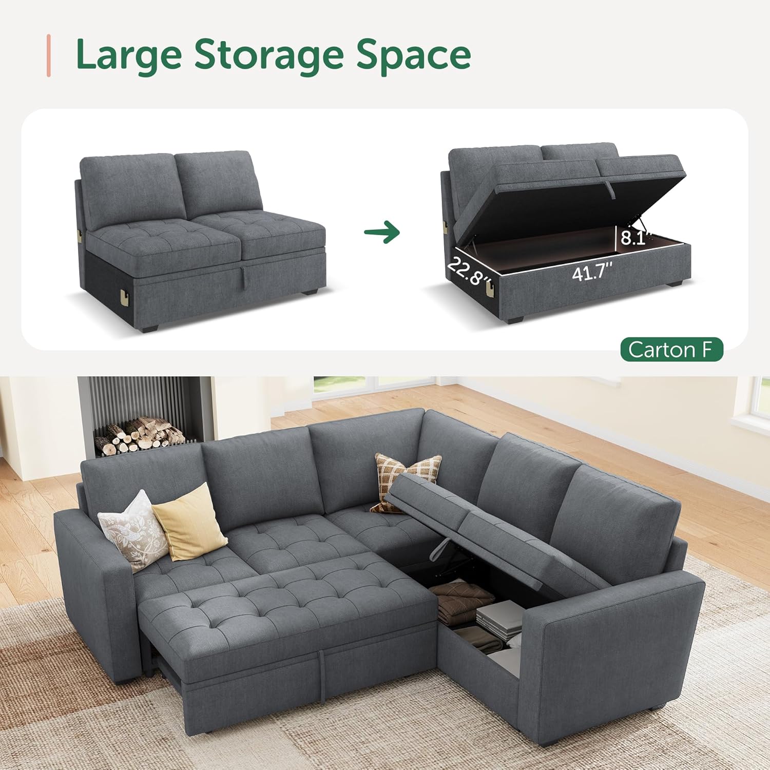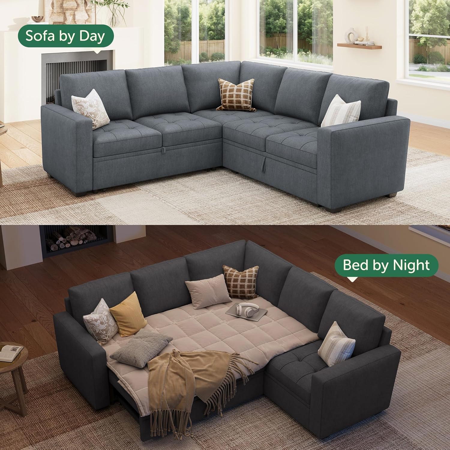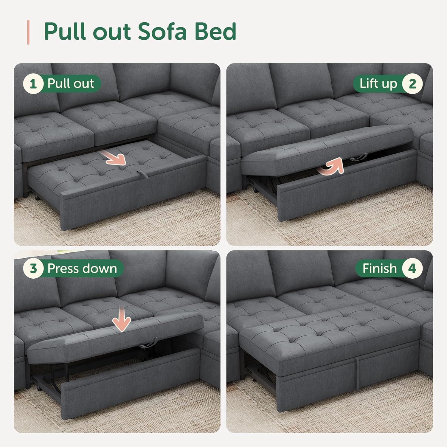Save Space: This modular sofa bed can provide extra sleeping space in a limited space without taking up extra ground space.When not in use, you can put away the pull out bed to make the room look more spacious and bright