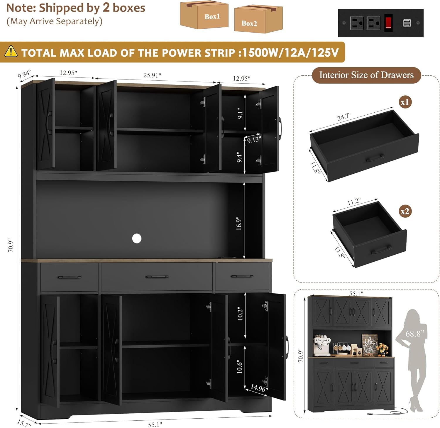 Crafted To Last: Crafted from high-quality MDF and completed with reinforced structure, this wide wood pantry with drawers ensures superior stablility and durability for lasting use, while the anti-tipping device exsits for enhanced safety. Overall size: 55.1"W x 15.7"D x 71"H