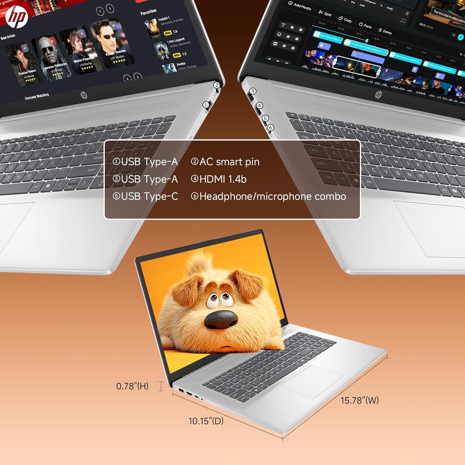 Seamless Connectivity: Wi-Fi 6 delivers high-speed and stable network transmission, ensuring smooth online meetings and large file downloads. Bluetooth 5.4 provides faster connections and longer range, offering maximum stability, meeting the connectivity needs of business, entertainment, and study. Packed with practical built-in ports, this 17 laptop skips adapters for seamless connectivity: 1x USB Type-C, 2x USB Type-A, 1x HDMI 1.4b, 1x Headphone/Microphone combo, 1x AC smart pin