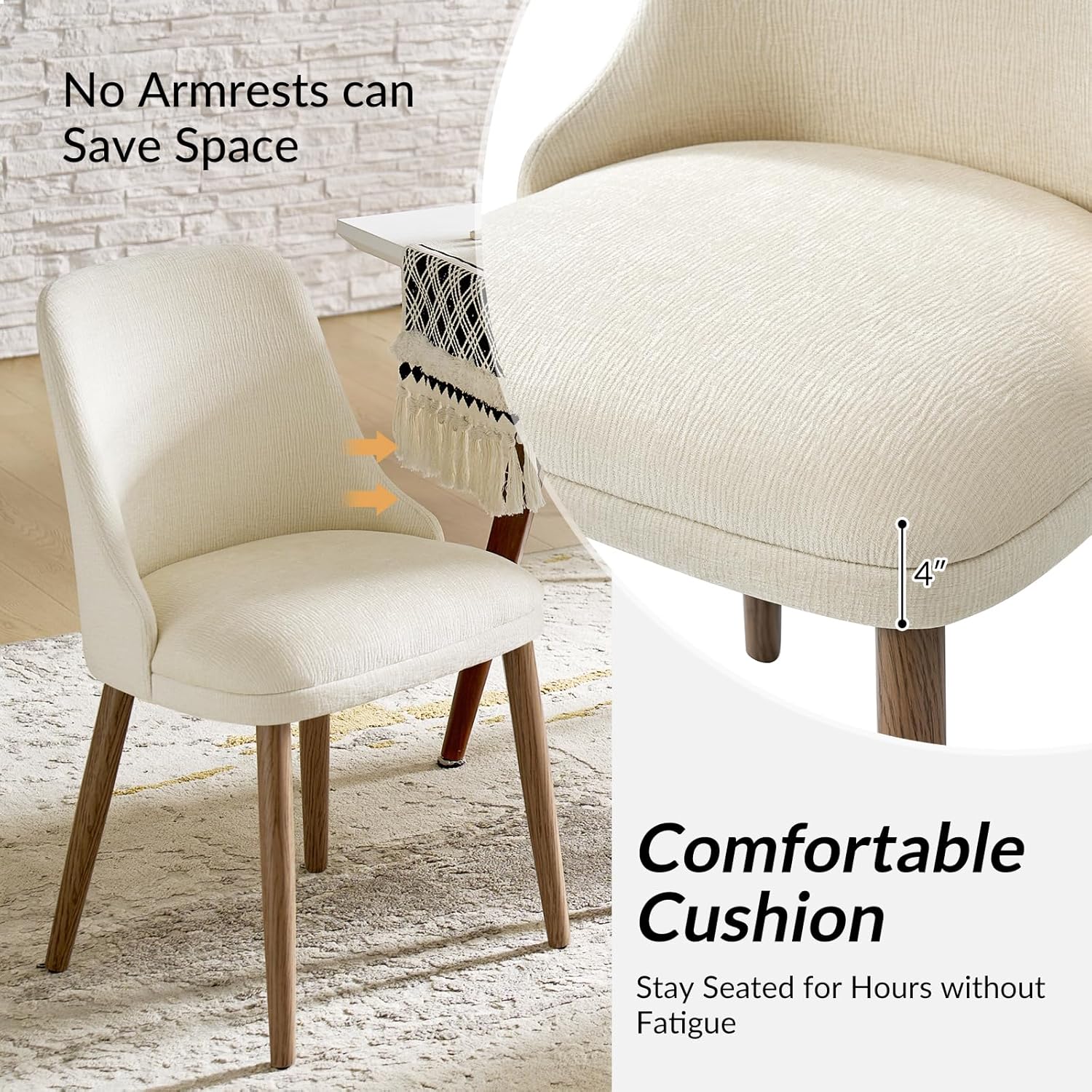 Armless Streamlined Design: Inspired by mid-century modern aesthetics, it features a sleek, space-saving silhouette. The breathable fabric upholstery adds timeless elegance to your home.
