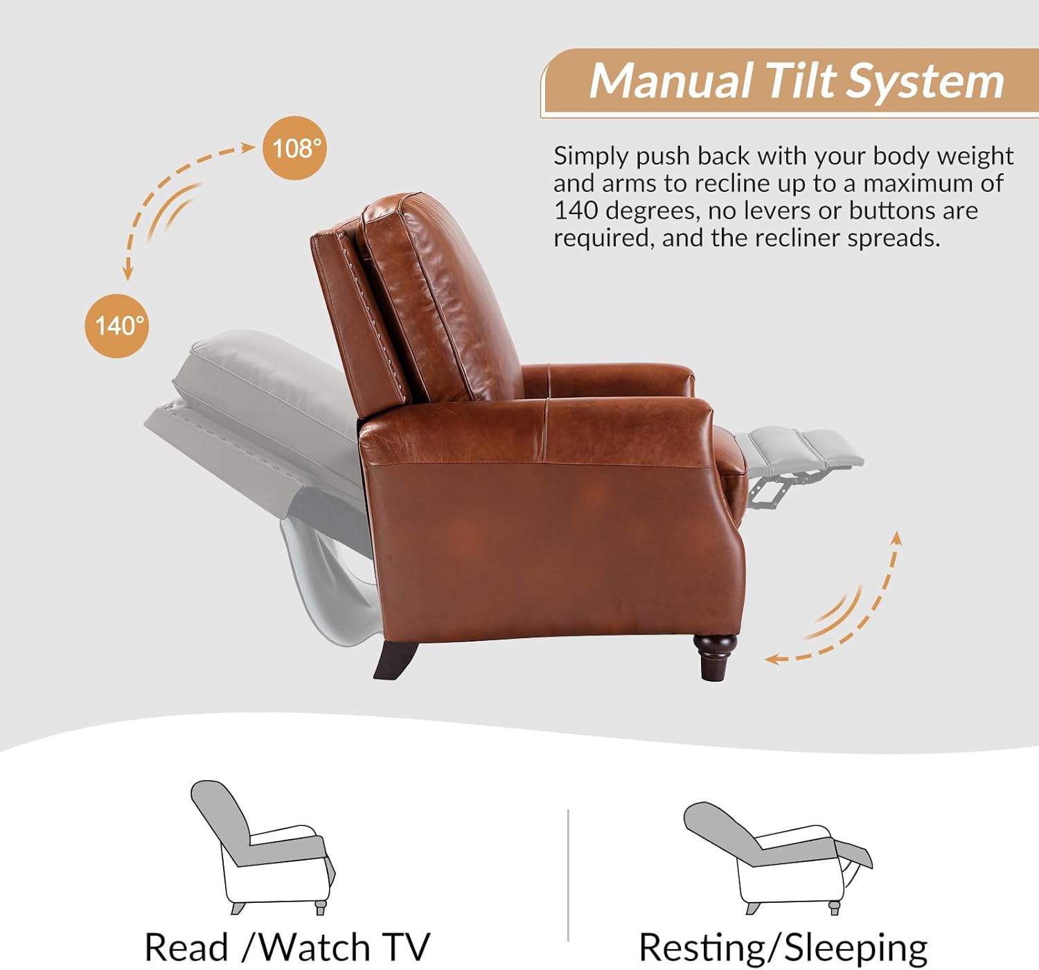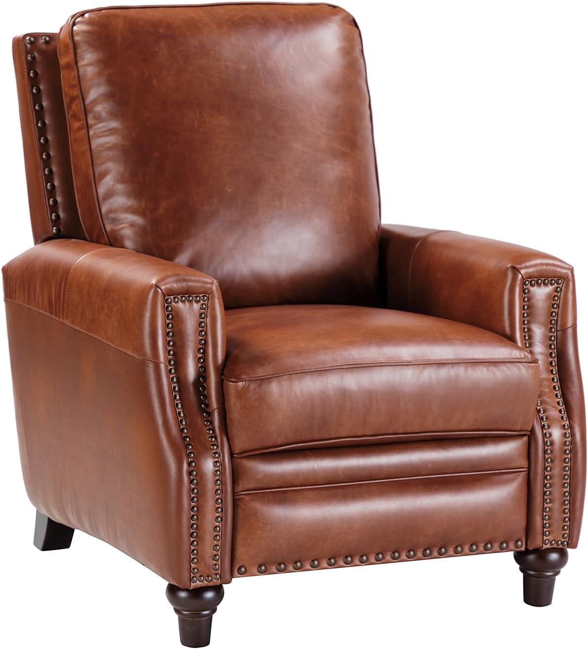 Genuine Leather Recliner Chair, Classic Push Back Recliner Armchair with Thick Seat and Backrest (Saddle)