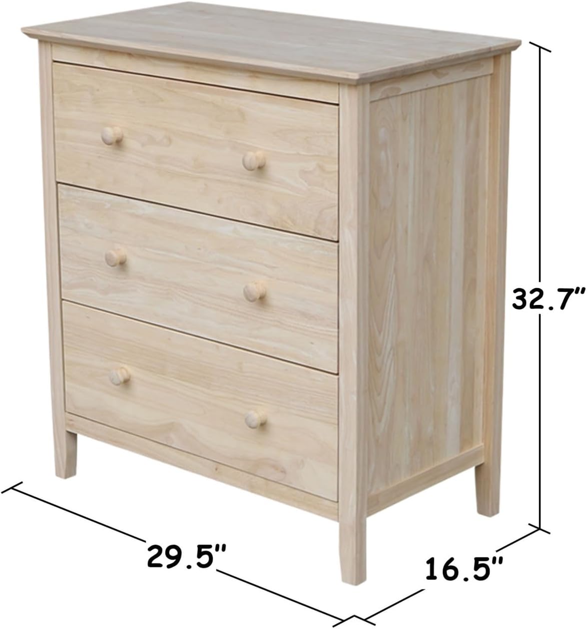 International Concepts Dresser with 3 Drawers, Unfinished