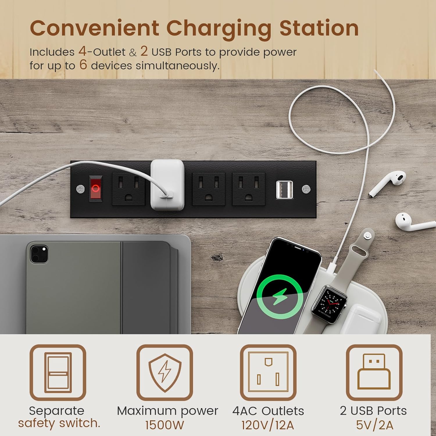 User FriendlyThe farmhouse executive desk includes a built-in power strip with 4 outlets & 2 USB Ports provides convenience for charging your gaming gear, tabletprinter or phone.Don't worry about not having enough power sockets. Also includes an on-off switch, thanks to the on-off switch, one-button power off to ensure safe electricity use, which strengthens security.