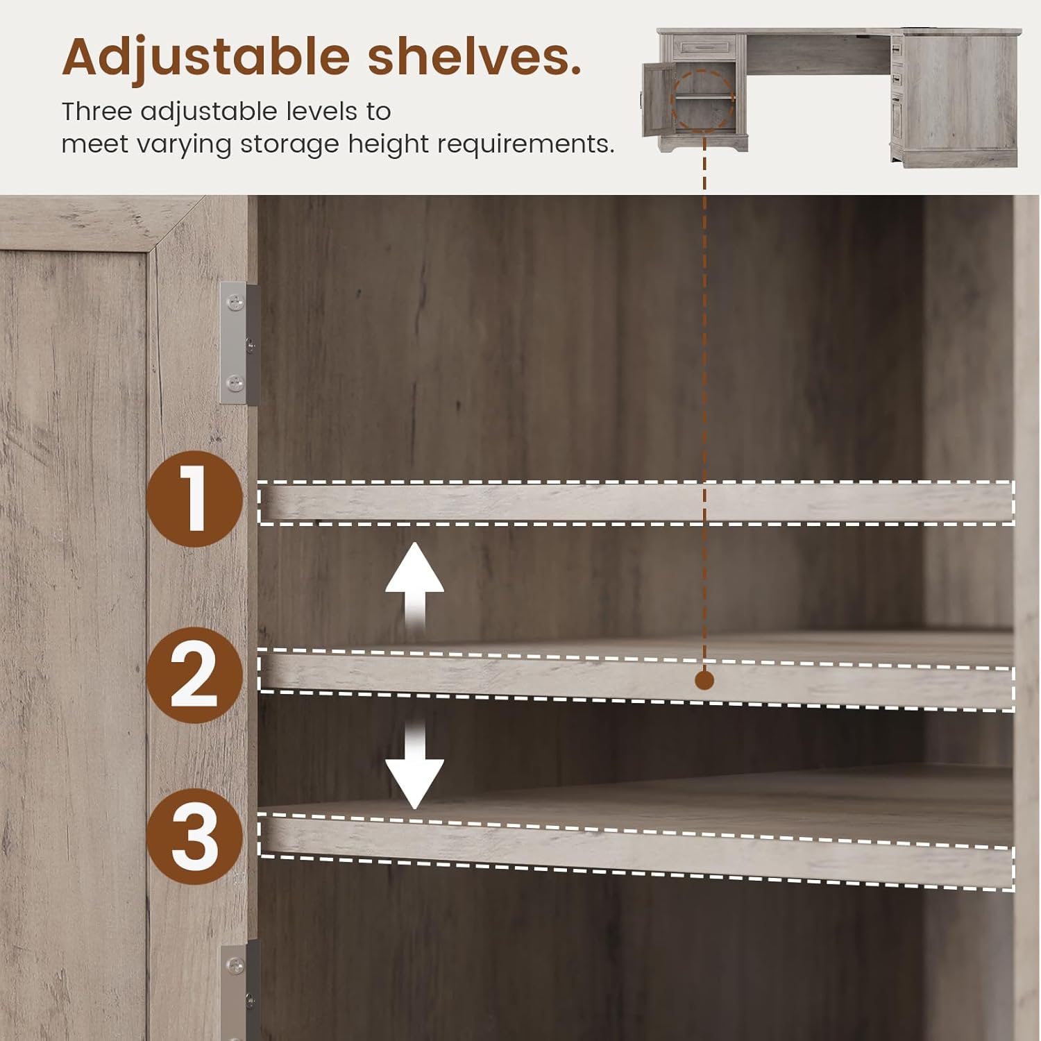 • Farmhouse L Shaped Desk, Executive Computer Desk with Drawers and Storage Cabinet, Home Office Desk with File Drawer and Power Outlet, Corner Desk, Workstation for Office Home, Grey
