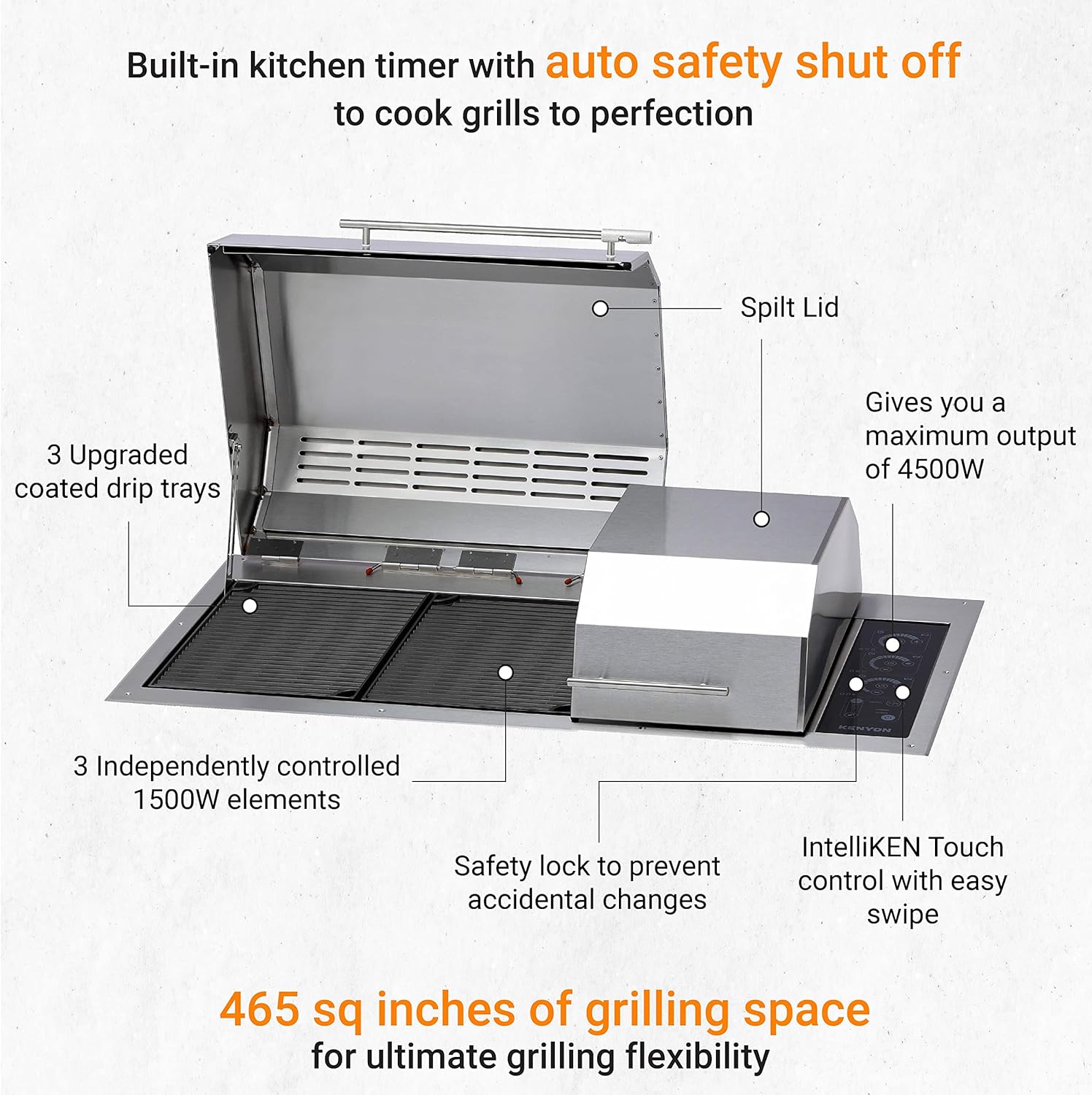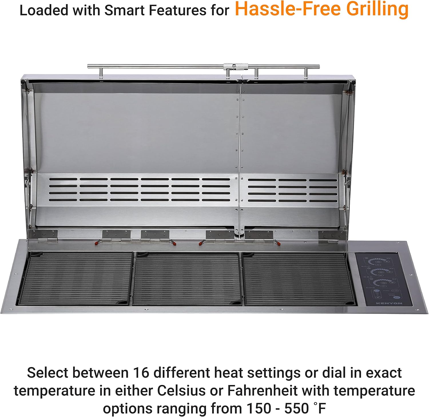 Digital Touch Panel: The built-in outdoor electric grill has IntelliKEN Touch control including swipe technology with user-friendly features like Precision Control (PC) and Direct Temperature Feedback (DTF) for easy operation.