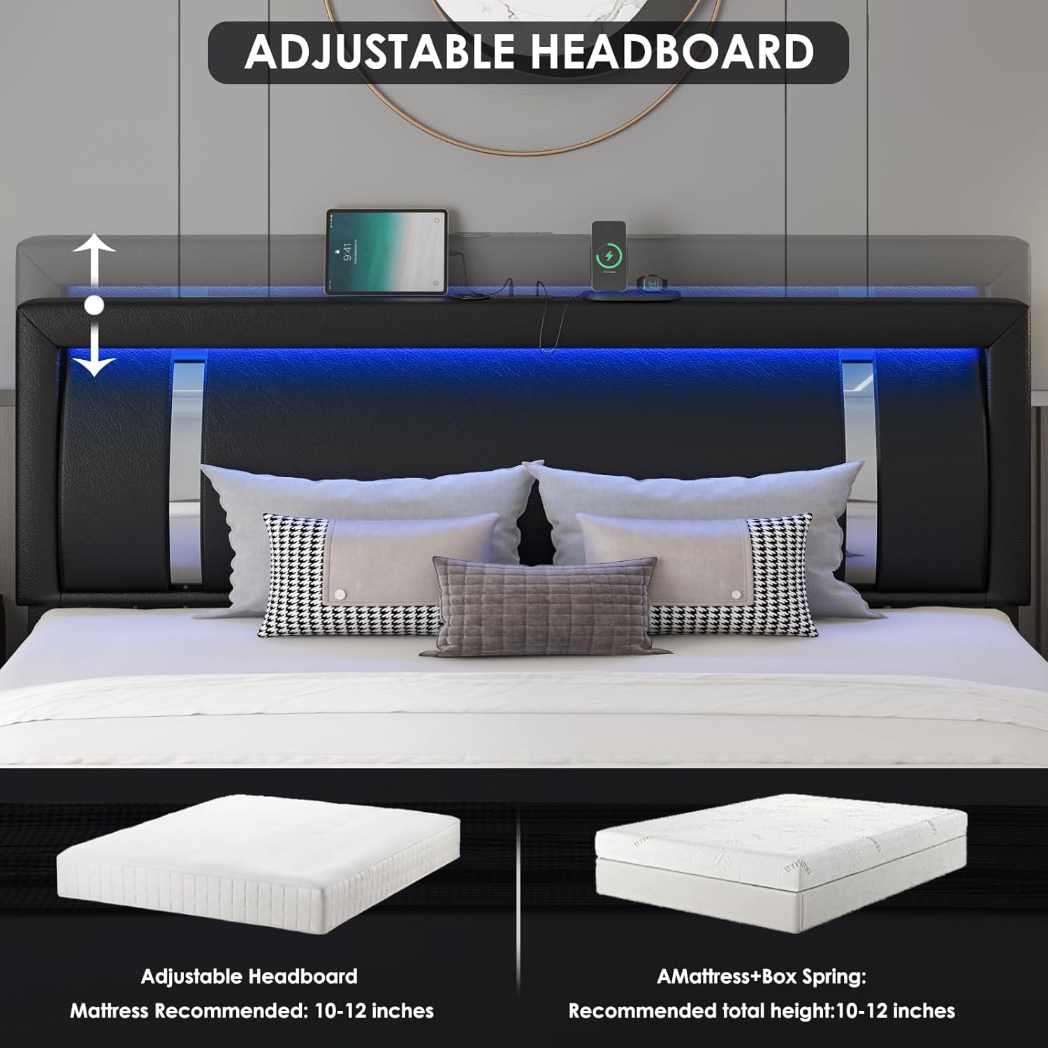 Convenient Charging Outlets: The bed features a built-in power strip with 3 USB and 1 USB Type-C plugs. Keep your phone, tablet, smartwatch or other mobile device charged and stay connected. The USB ports of this smart LED bed frame provide 5V/3A and 5V/2A respectively for faster charging efficiency.
