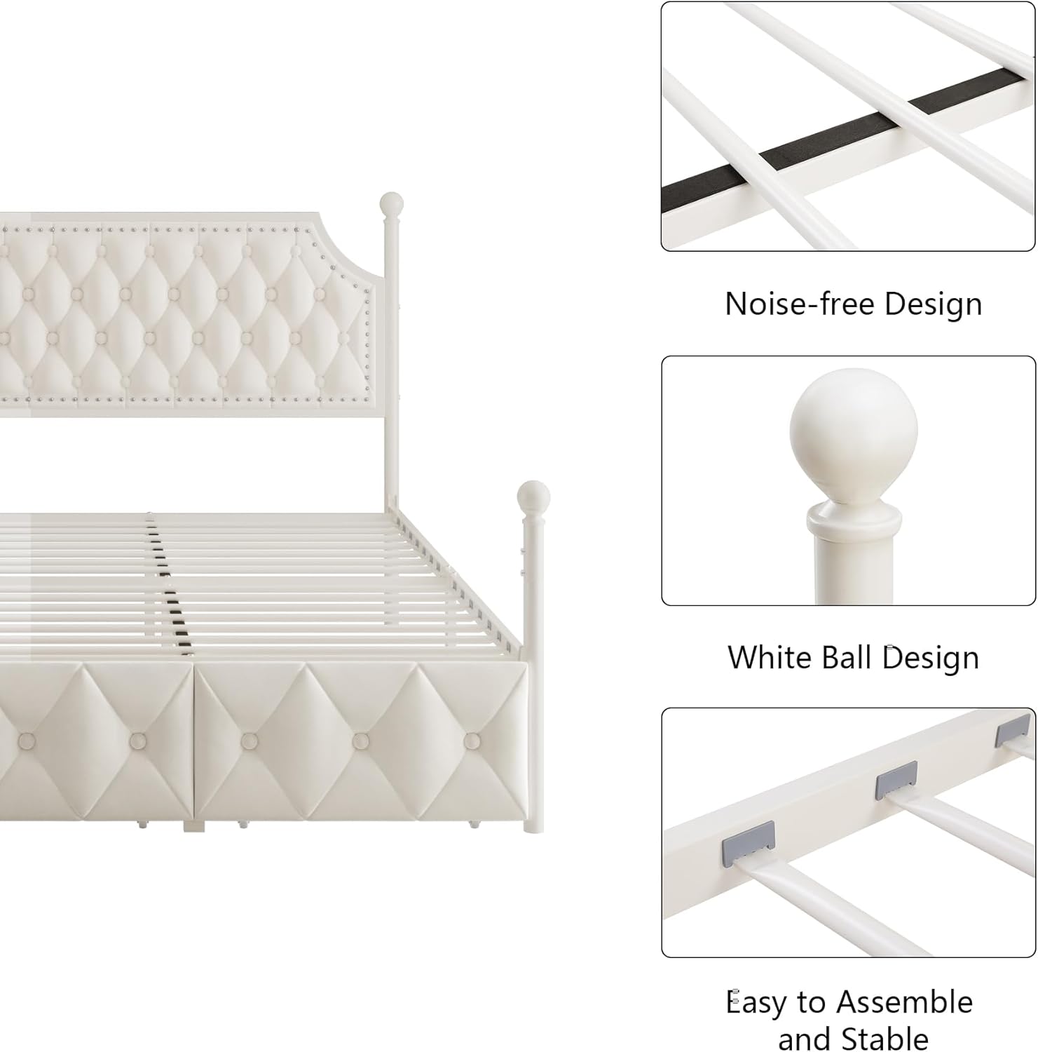 Noise-Free and Durable Construction: 17 sturdy steel slats and legs provide strong support to the metal bed frame, and plastic feet protect the floor from scratches. The plastic silent clips can fix the metal slats more effectively and prevent noise. Weight capacity: 800lbs.