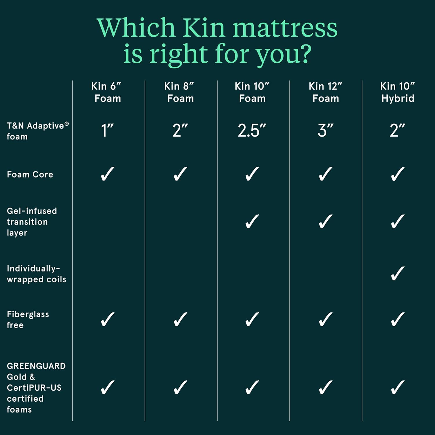 • Kin By Firm 8" King Adaptive Foam Mattress in a Box, Cooling Pressure Relief, Balanced Support, 100 Night Trial, Fiberglass-Free, CertiPUR-US, 10-Year Limited Warranty